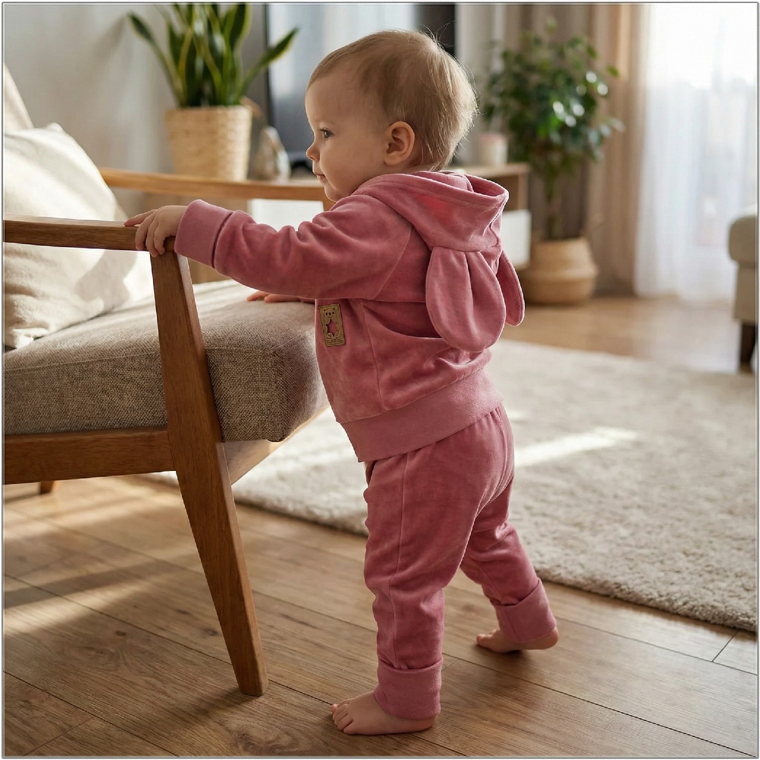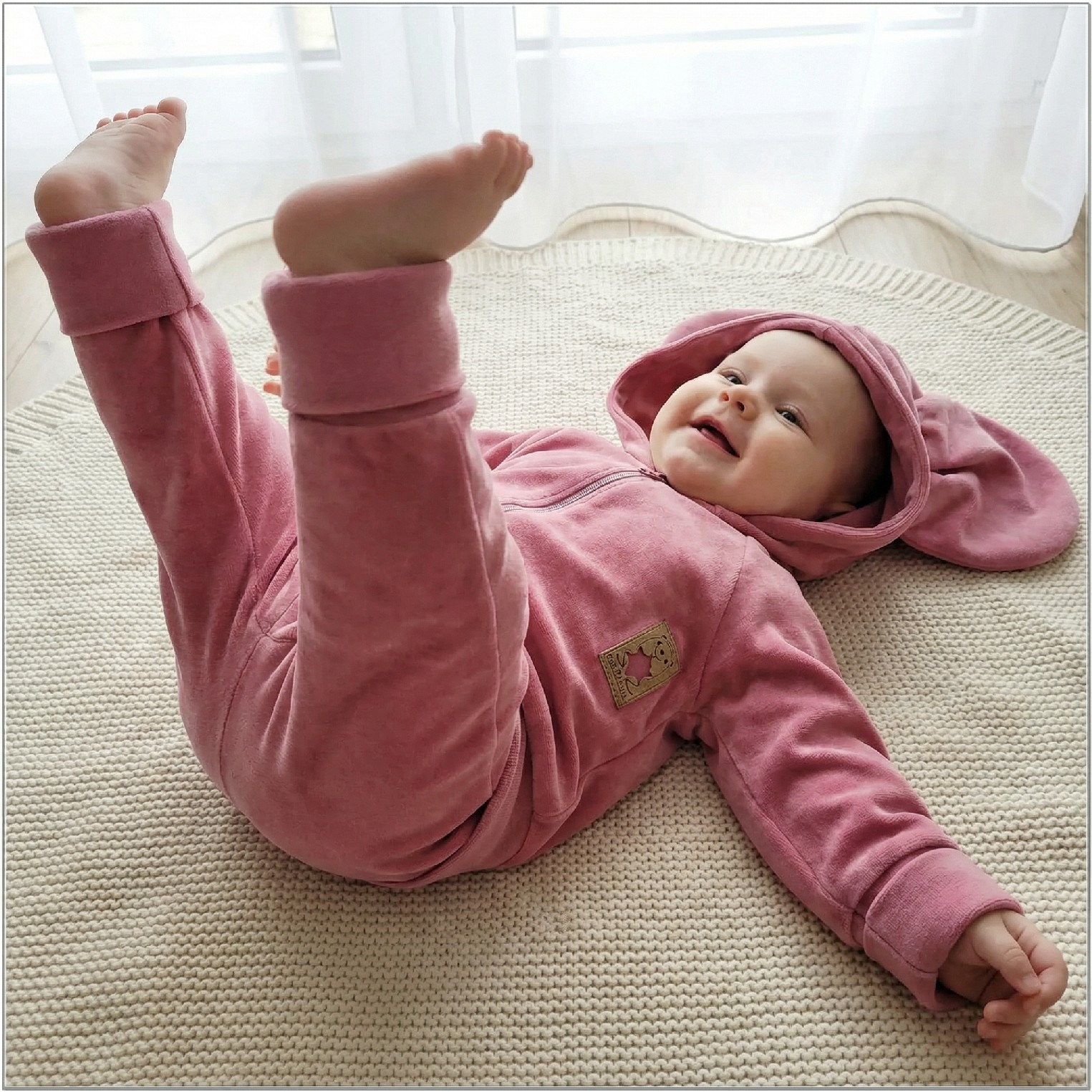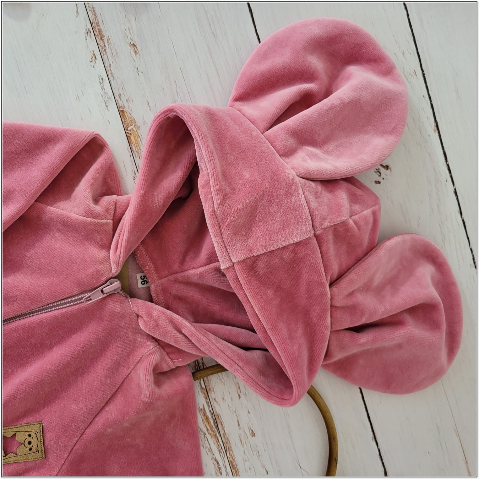 Dres niemowlęcy welurowy z dużymi uszami 56-86 brudny róż