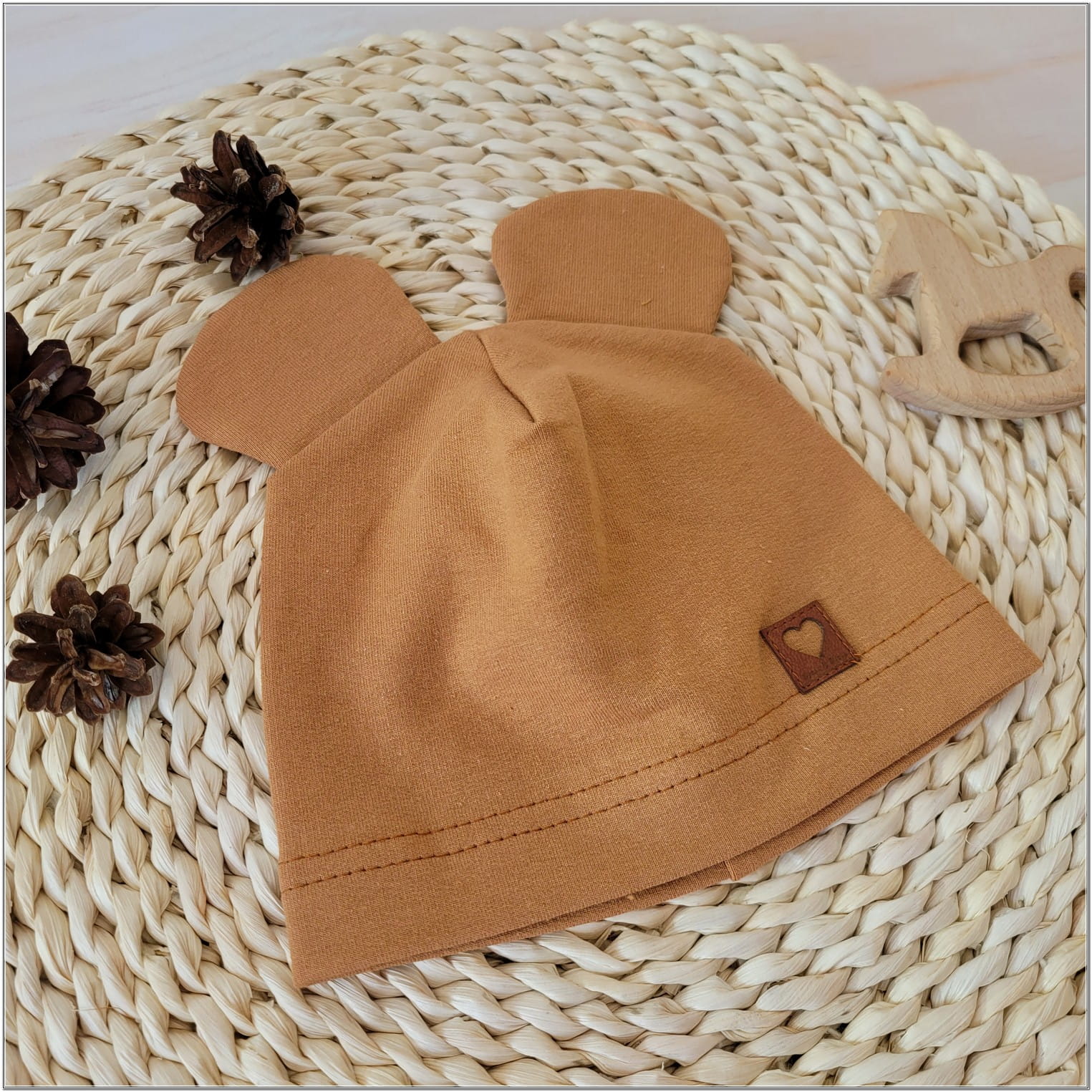 Dresowa czapka niemowlęca z uszkami 56-62 cynamonowa