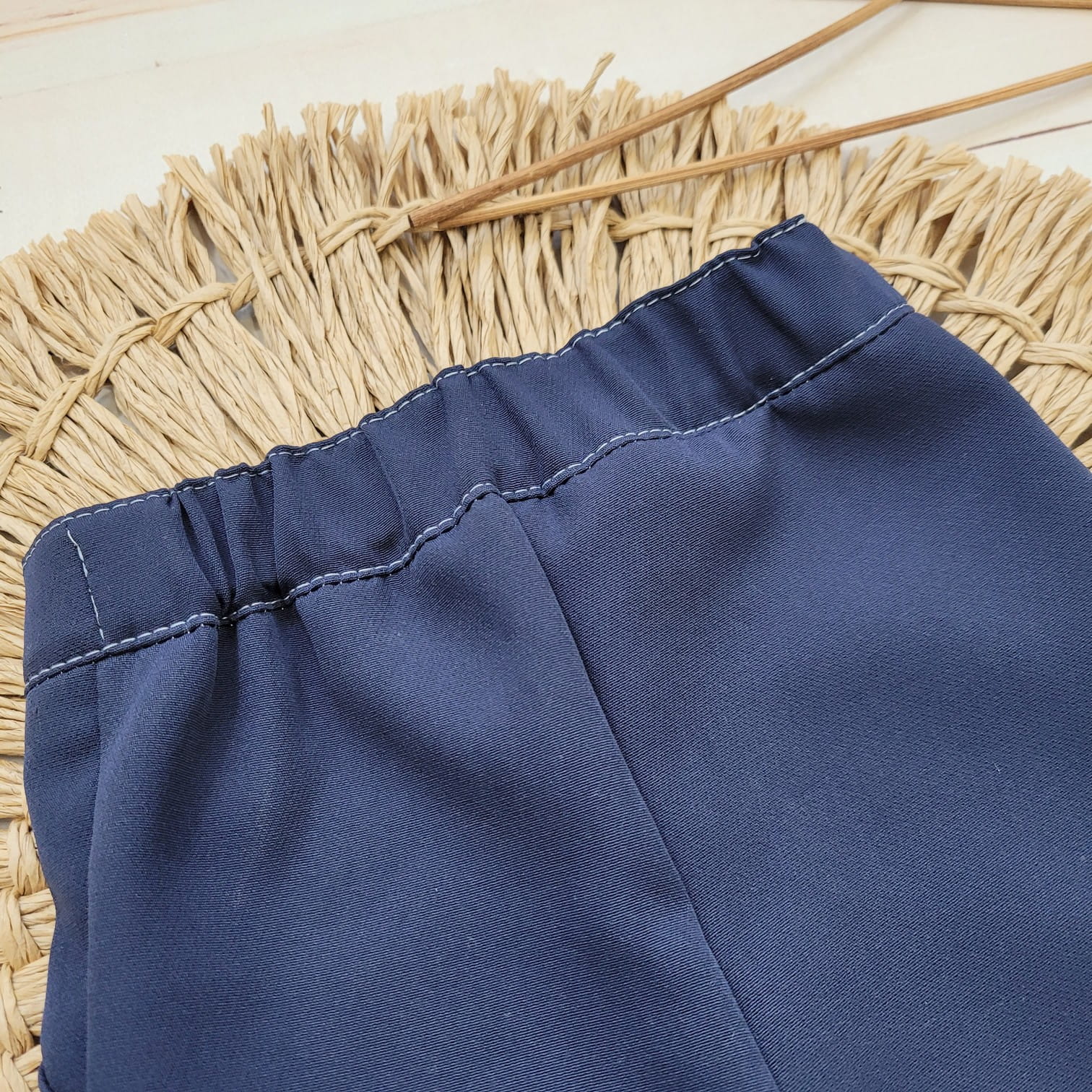 Eleganckie krótkie spodenki na lato, granatowe wykonane z pięknej tkaniny.