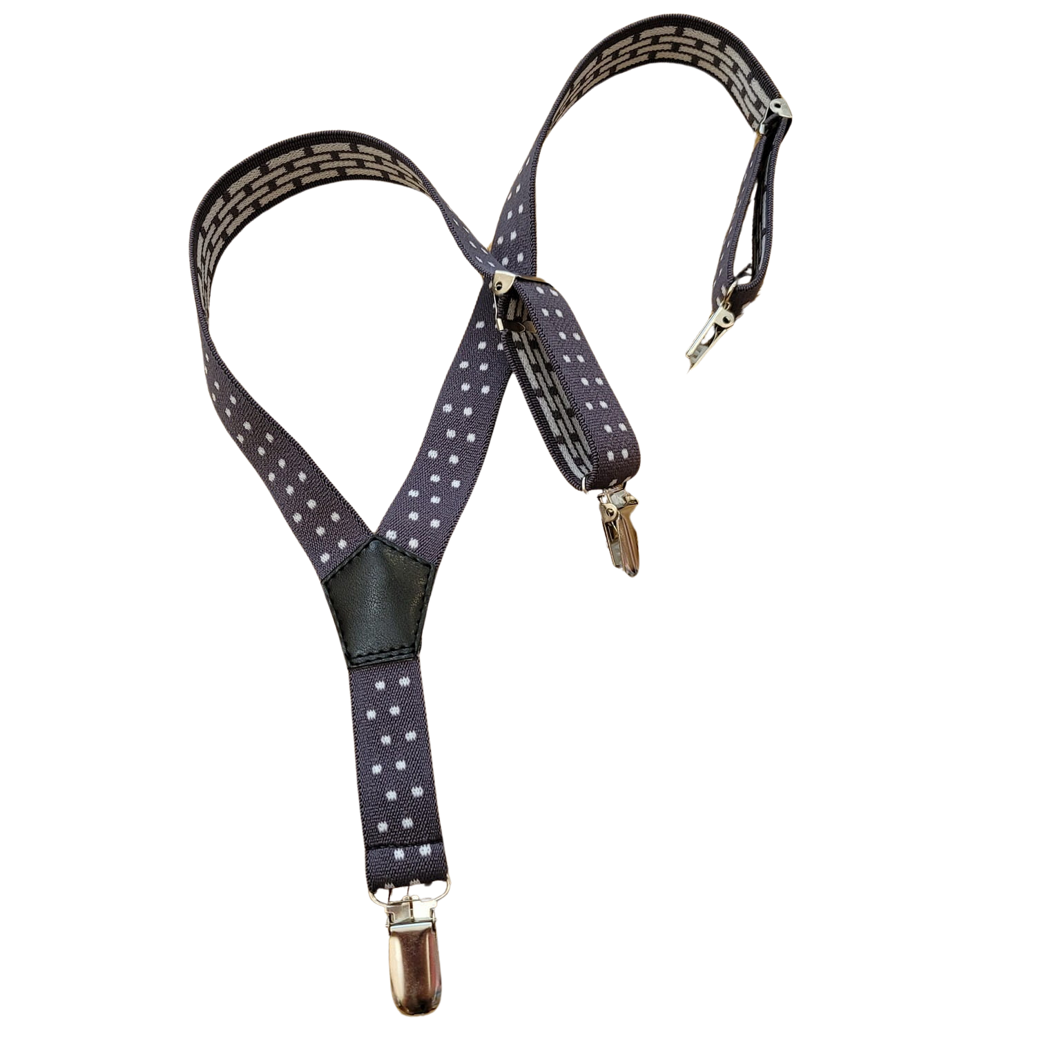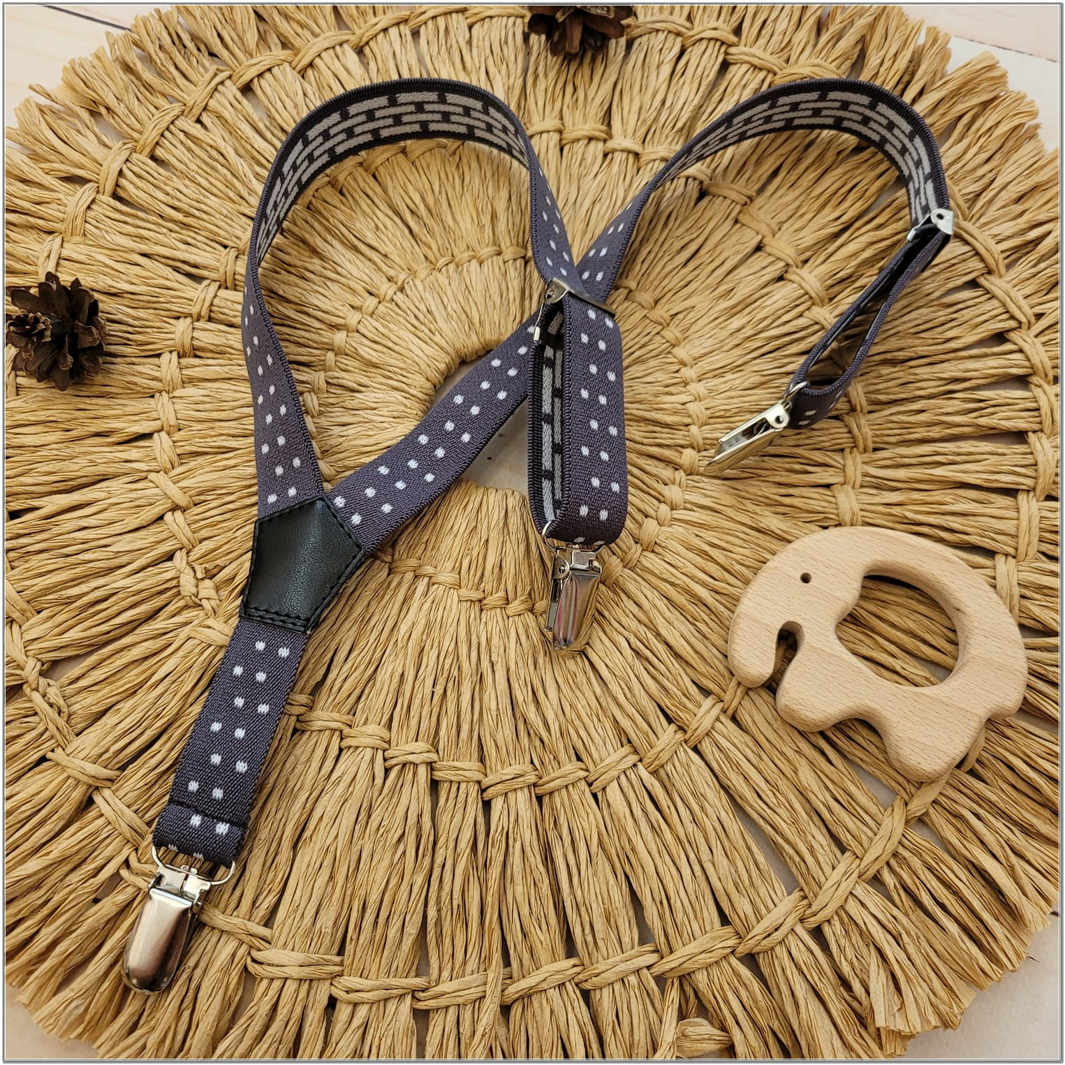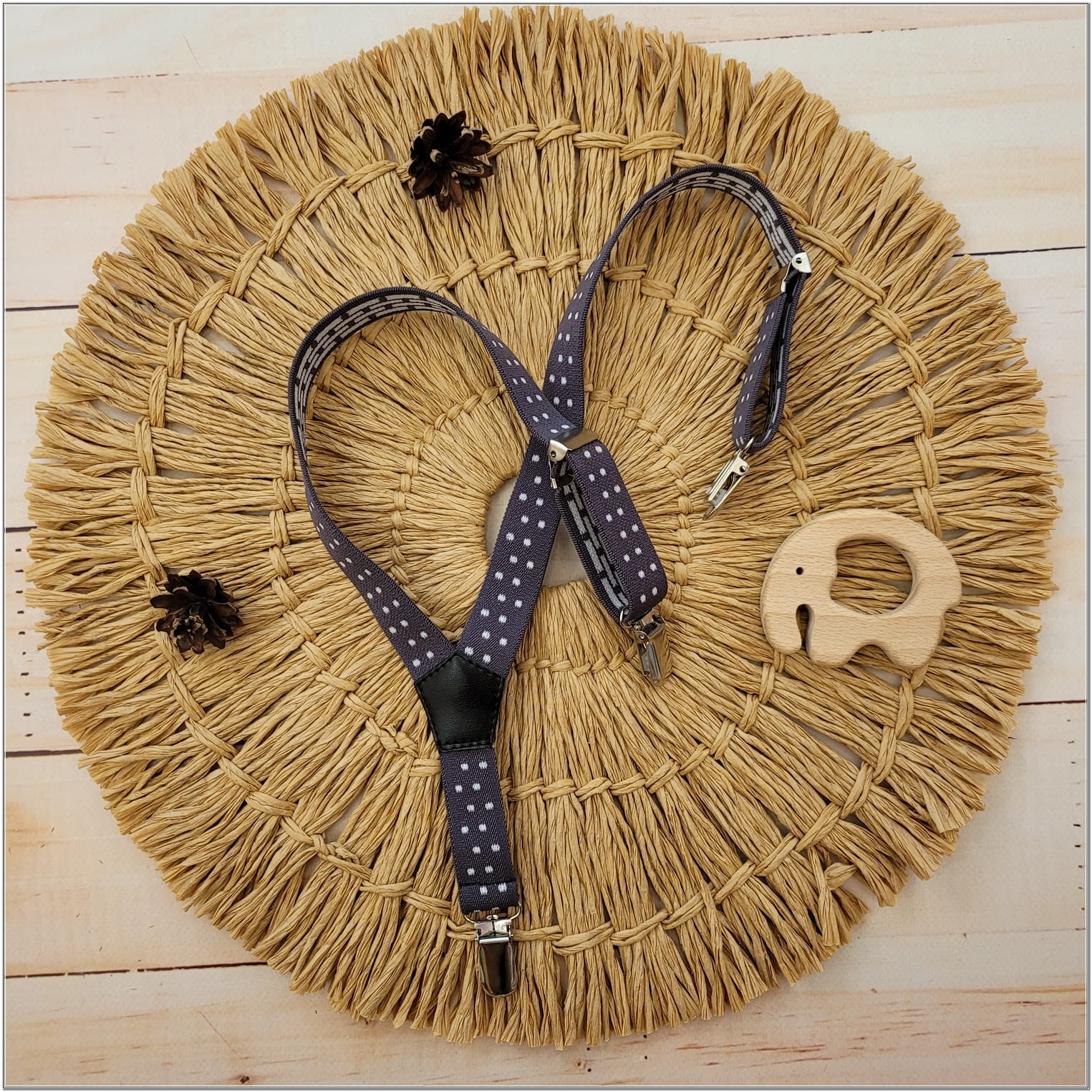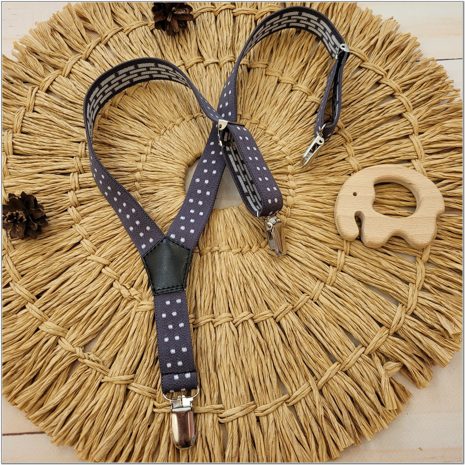 Eleganckie szelki niemowlęce ciemno szare, grafitowe w białe kropki