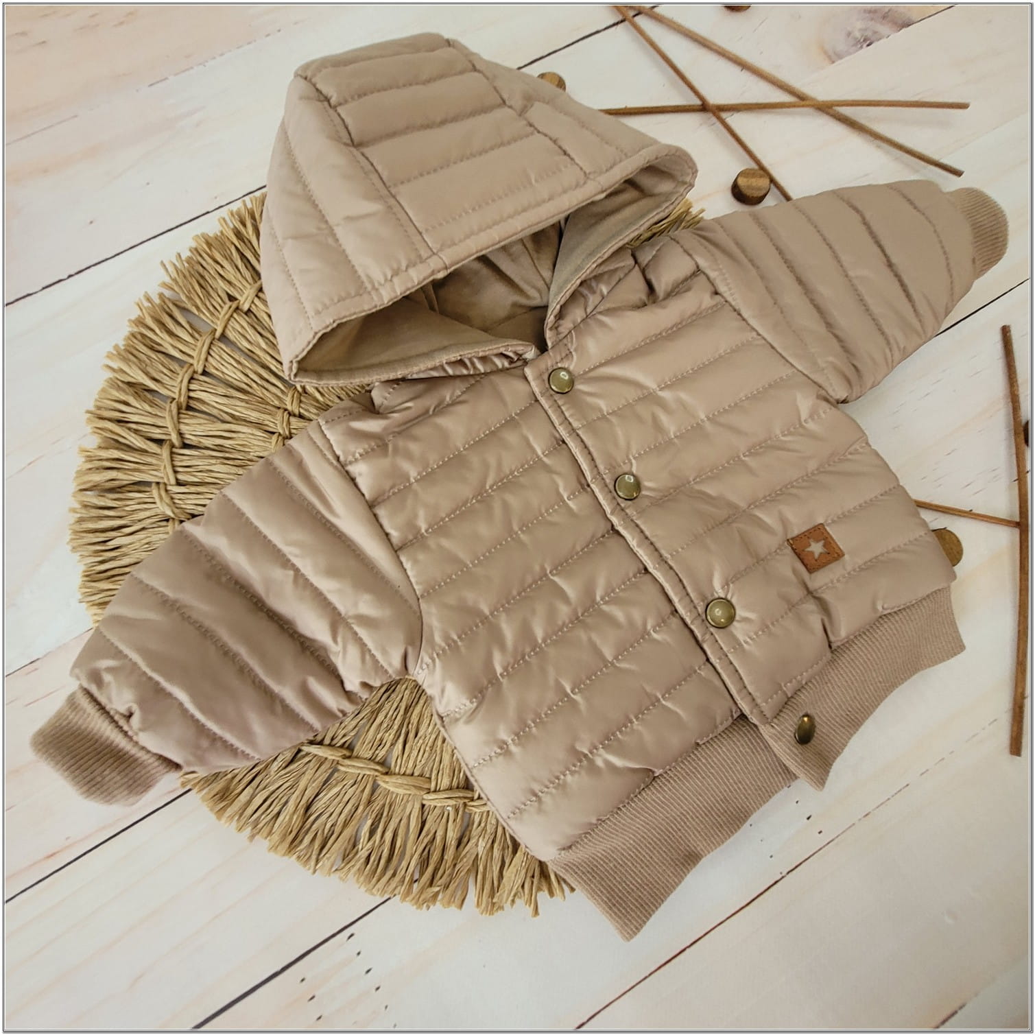 Jesienna kurtka pikowana z kapturem bejsbolówka 56-104 beż toffi