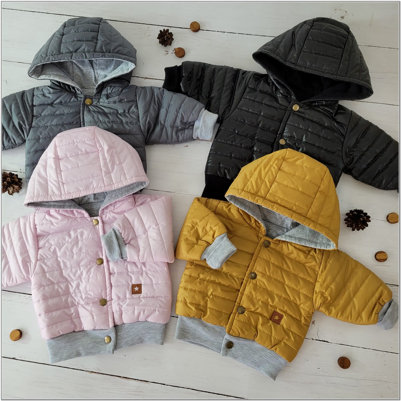 Przepiękna, modna, pikowana - jesienna kurteczka niemowlęca, dziecięca z kapturem - bejsbolówka