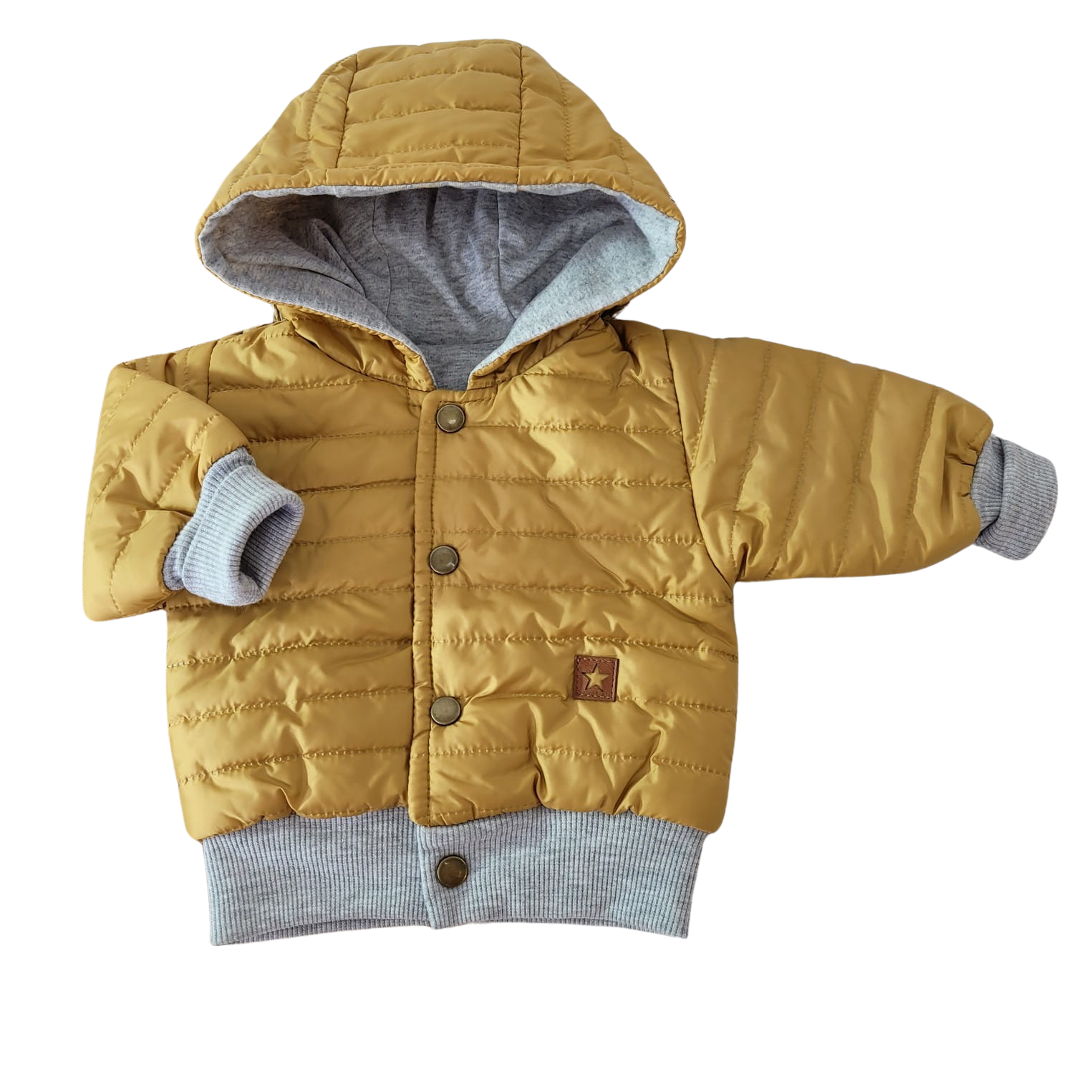 Jesienna kurtka pikowana z kapturem bejsbolówka 56-86 musztardowa