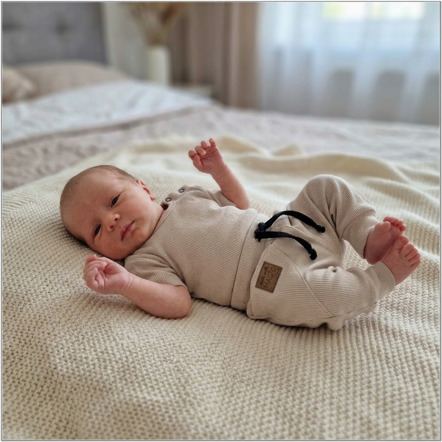Piękny uniwersalny 2-częściowy Komplet z prążka. Body z krótkim rękawem+spodnie