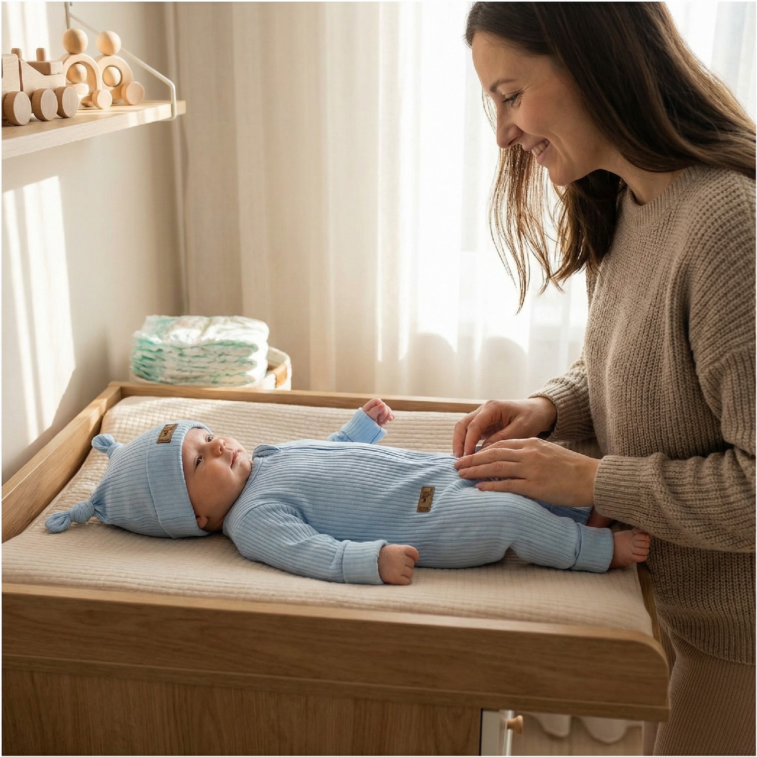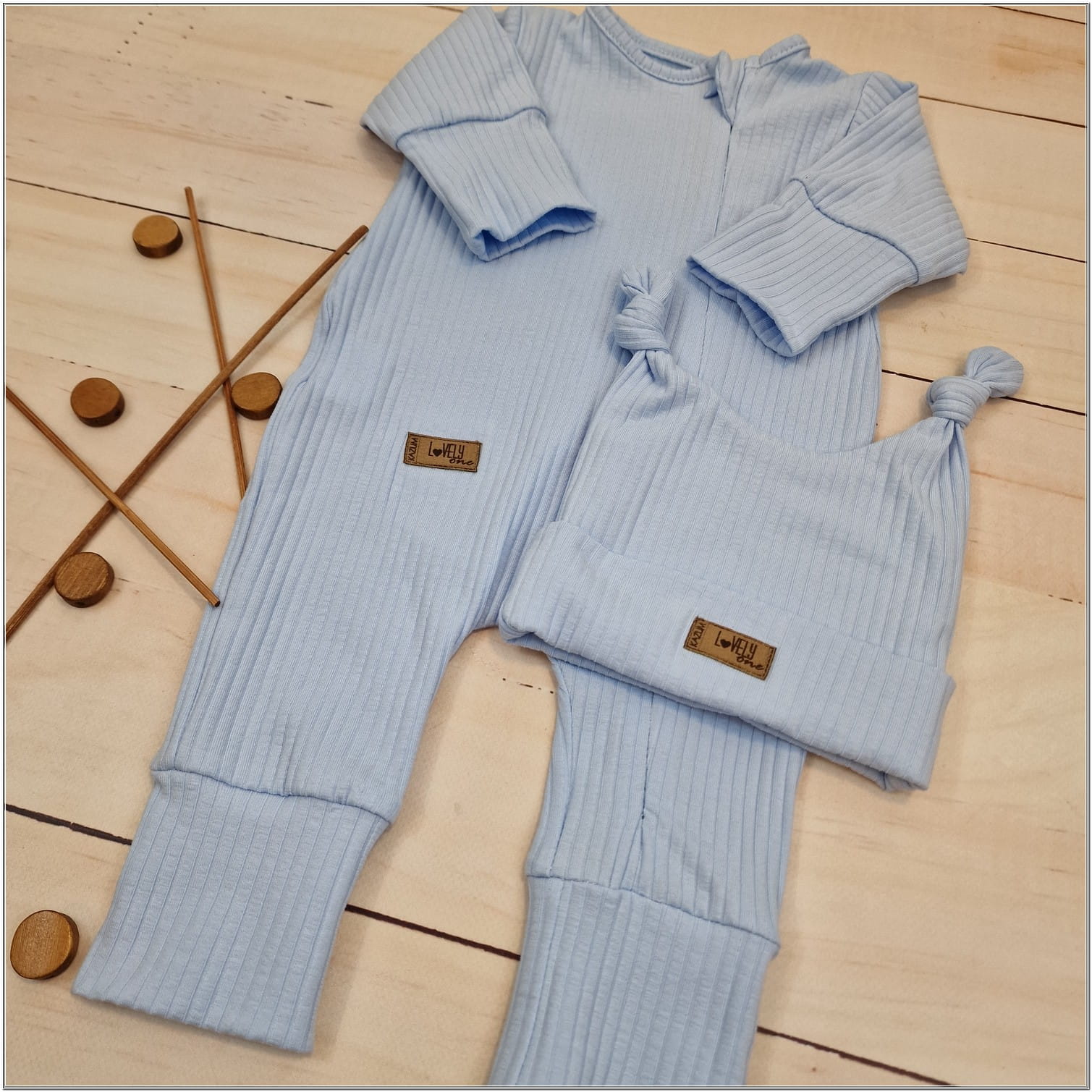 Zarówno czapeczka jak i pajacyk są elastyczne i wygodne dla dziecka.