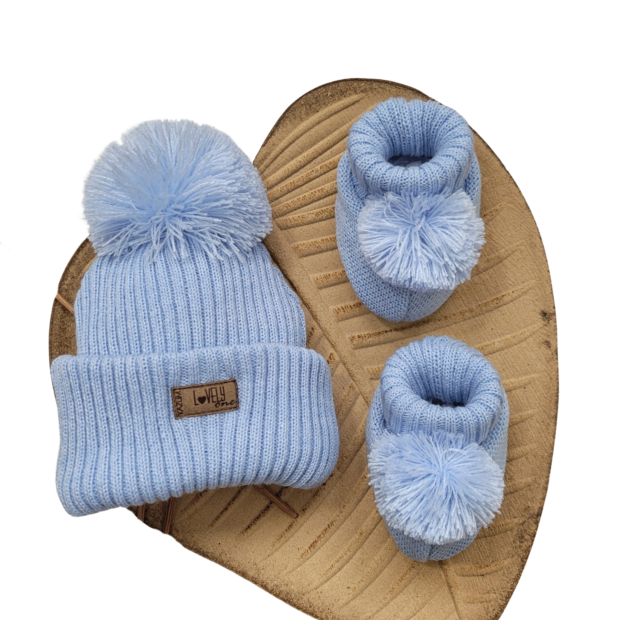 KAZUM 2 cz komplet włóczkowy czapka+buciki rozmiar 56-86 baby blue