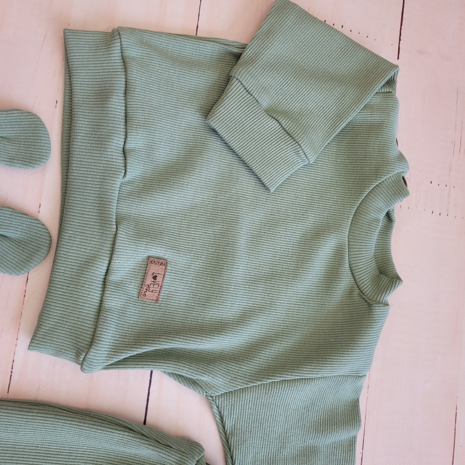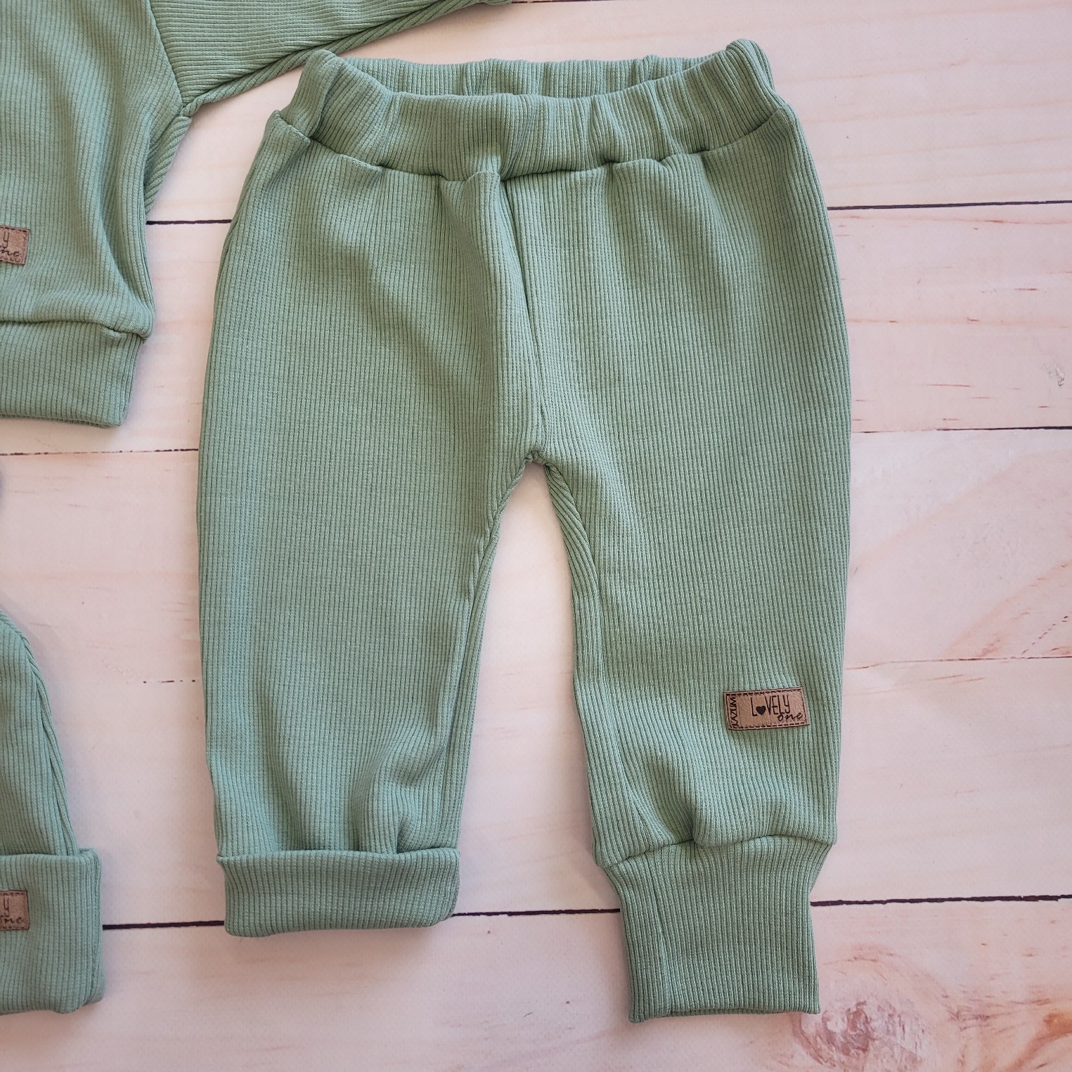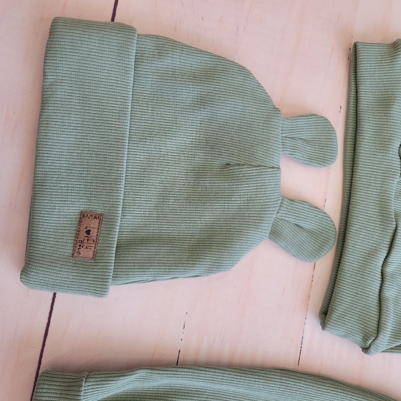 Unikalny prążkowany komplet niemowlęcy, dziecięcy bluza rozpinana przy szyi + spodnie + czapeczka w kolorze gooseberry green