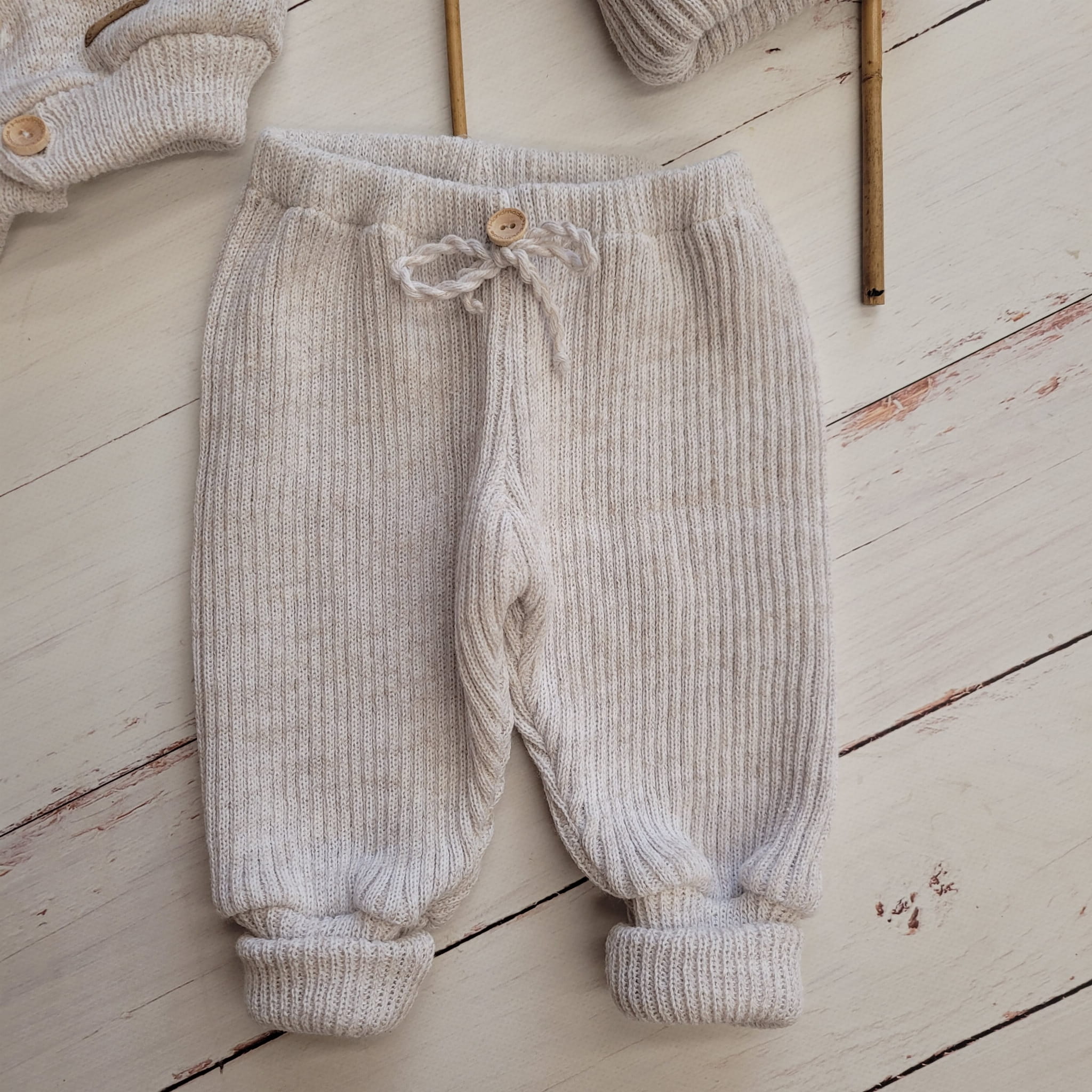 KAZUM 3 cz komplet włóczkowy Sweterek dziergany+spodnie +czapka 56-86 cappuccino