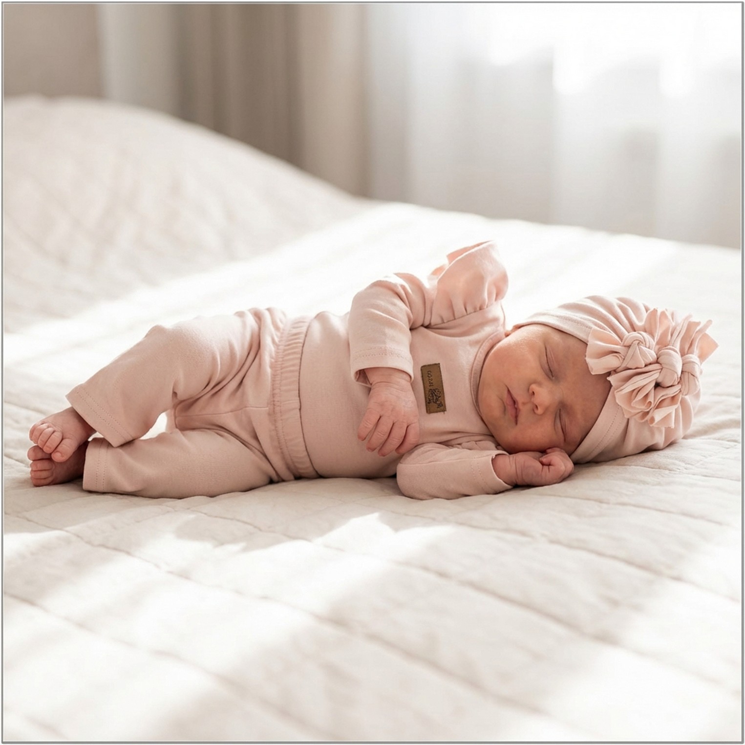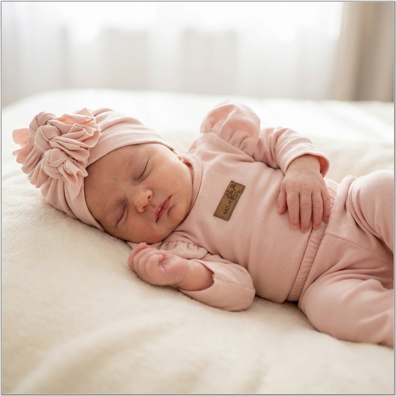 KAZUM 3cz piękny komplet body + spodnie dzwony + czapka 56-86 powder pink