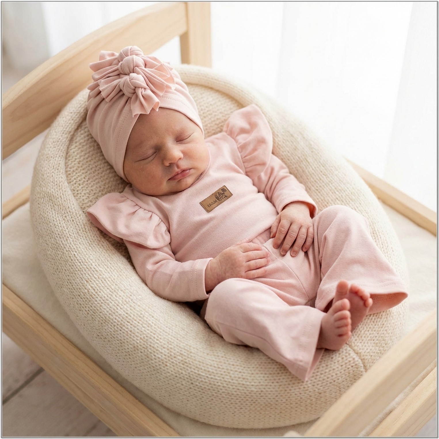 Body z falbankami przy rękawkach do tego cudowne elastyczne legginsy dzwonki. Całość wspaniale dopełnia modna czapka na głowę.