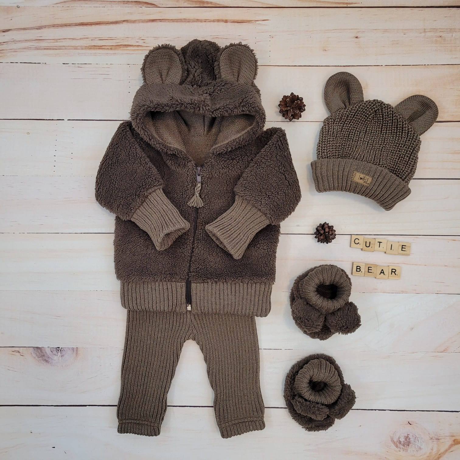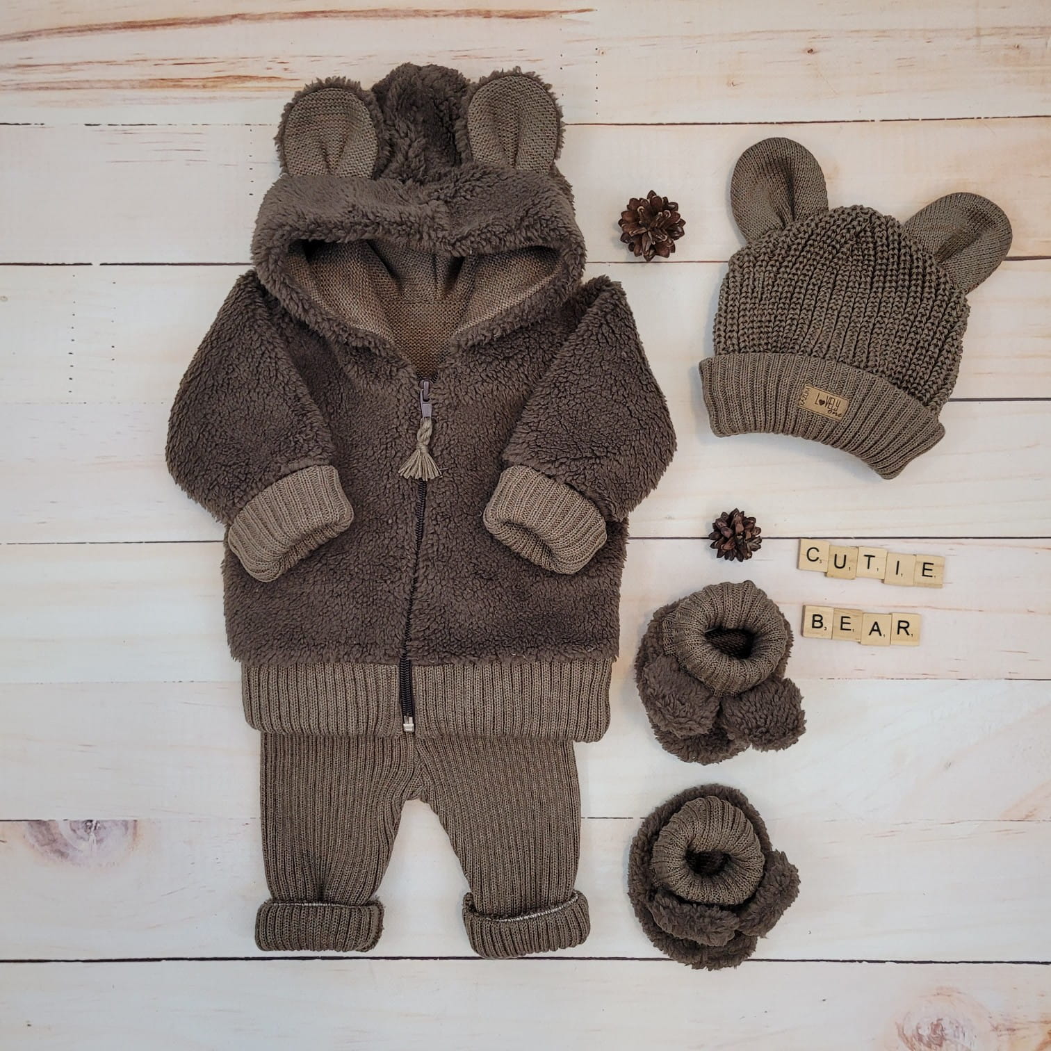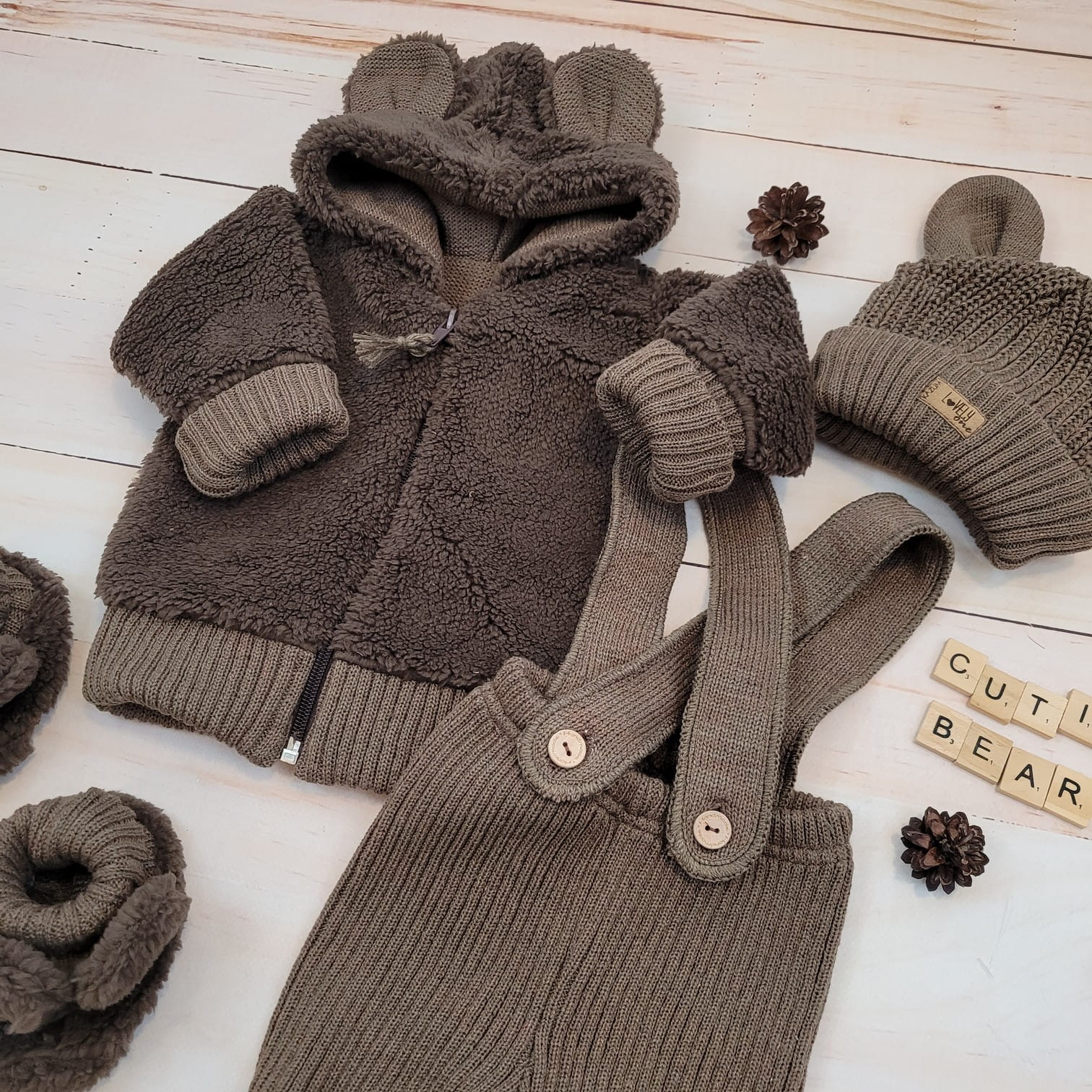 KAZUM 4cz komplet Kurteczka misiowa +legginsy włóczkowe+czapka i buciki 56-86 chocolate muffin