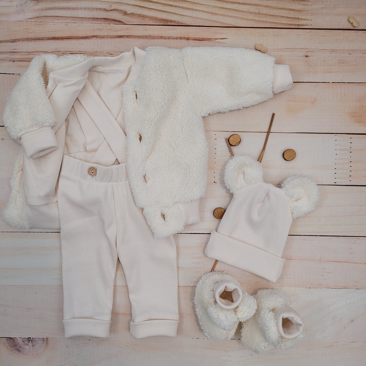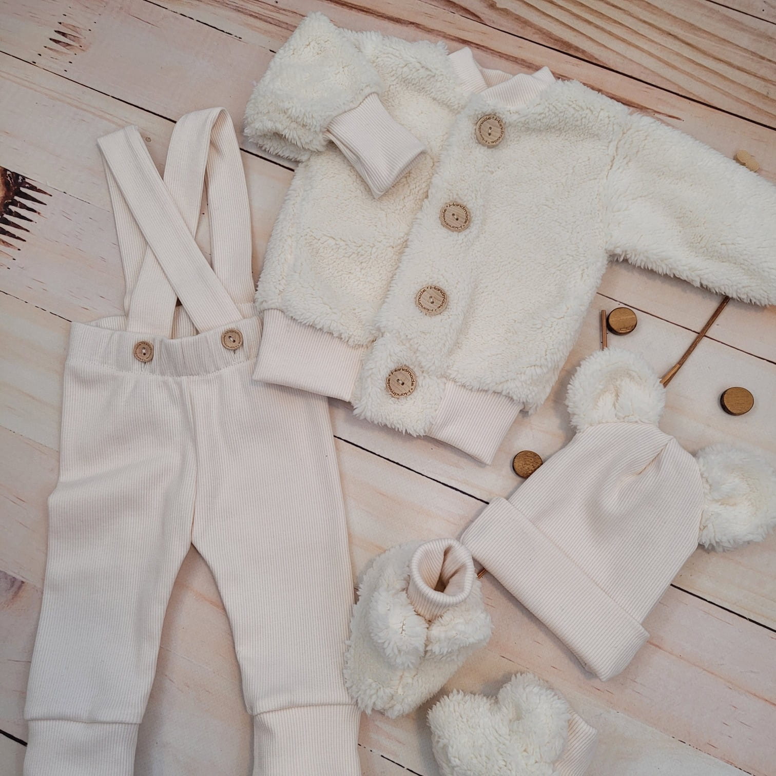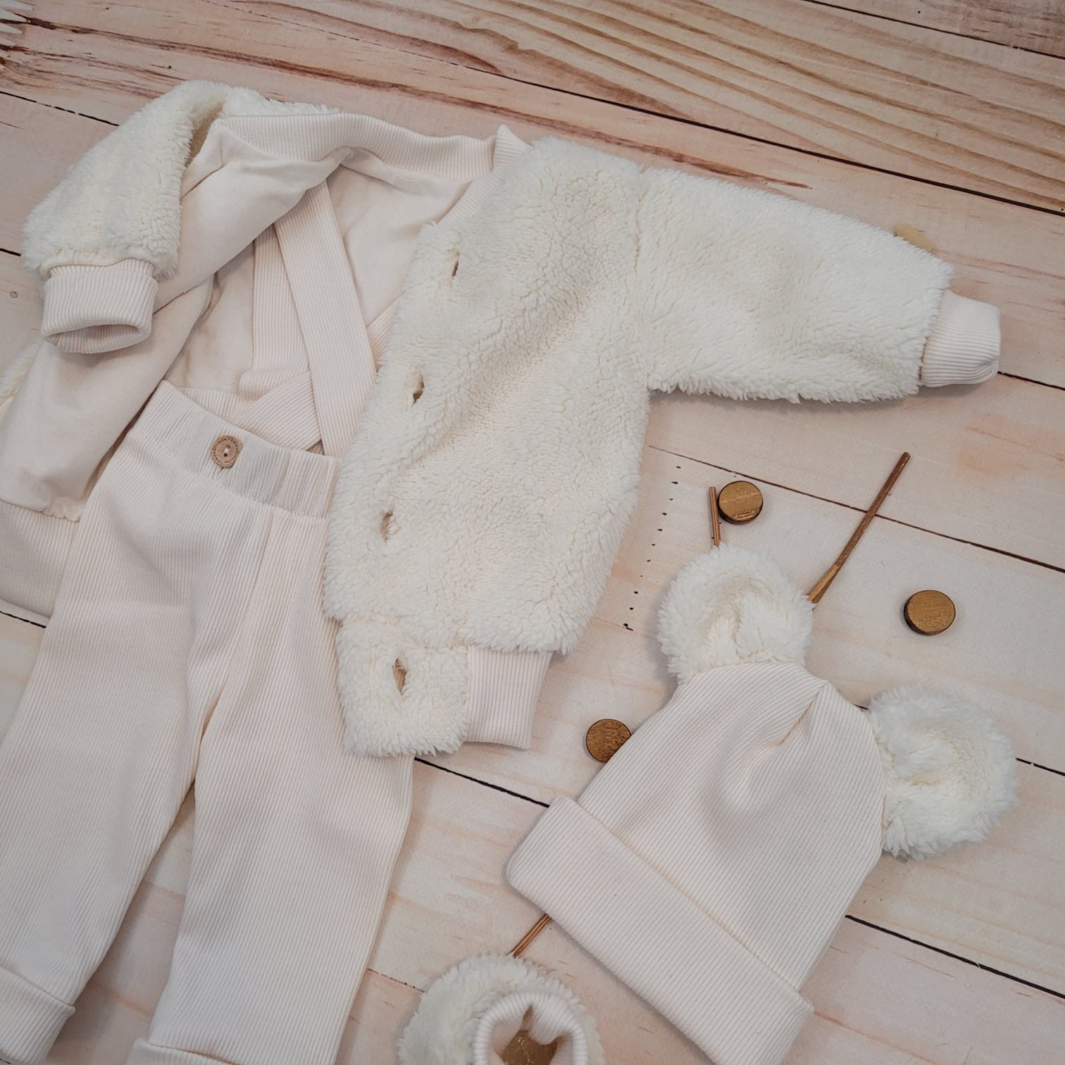 Przepiękny, modny, misiowy 4 częściowy komplecik, rosnący wraz z dzieckiem.