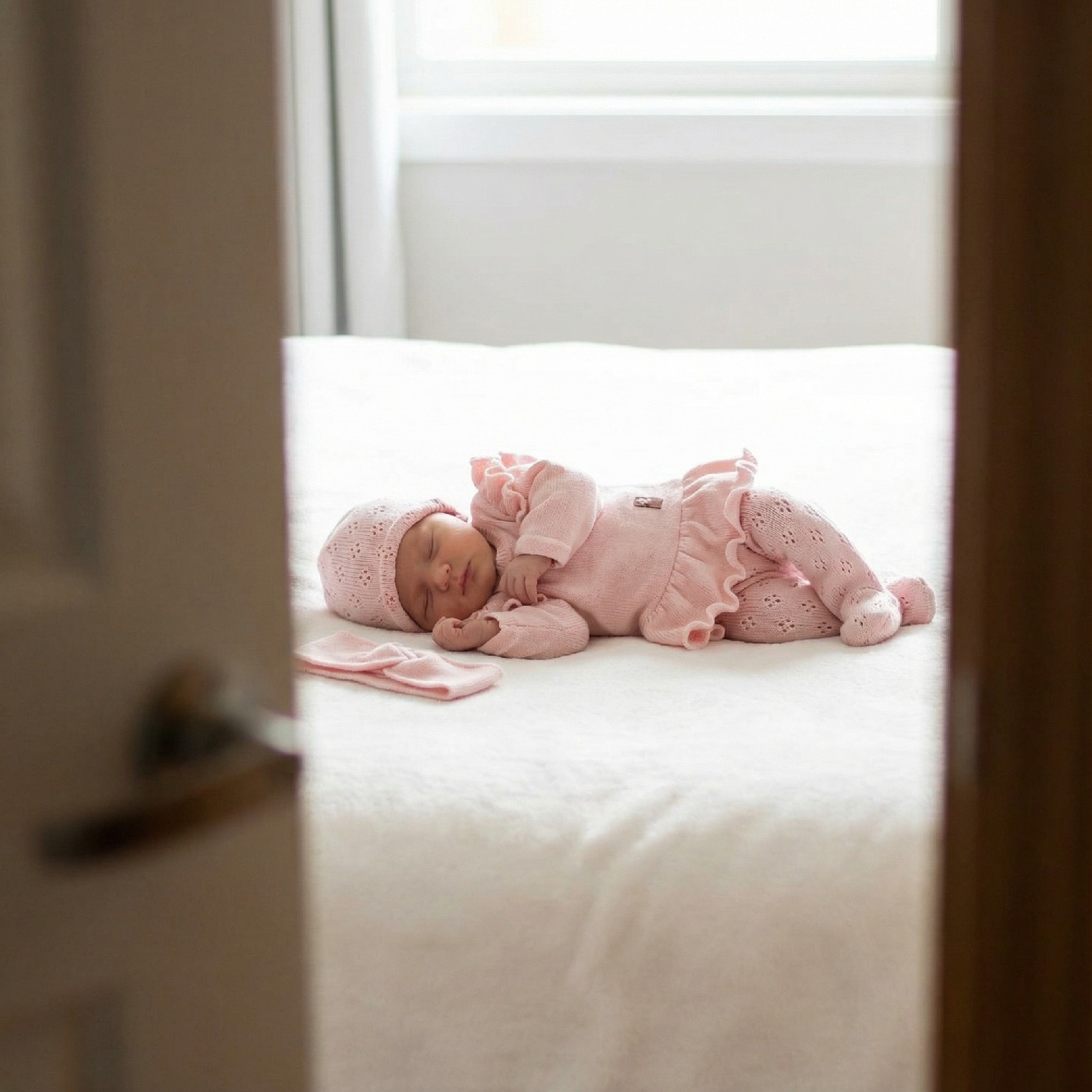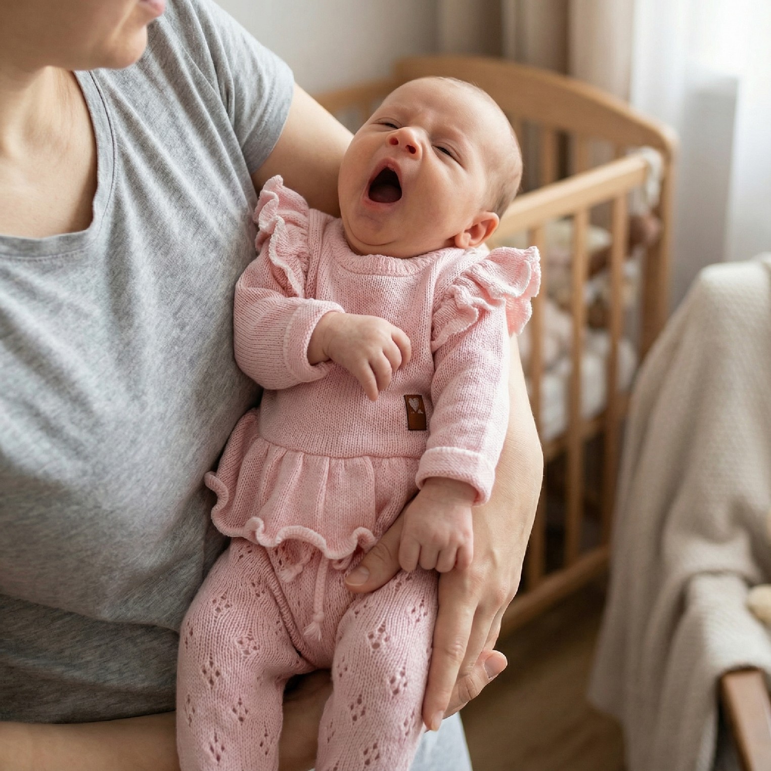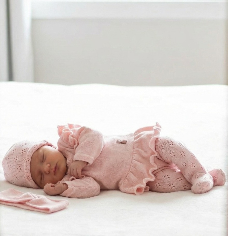 KAZUM 4cz włóczkowy komplet ażurkowy z falbanką 56-68 sweet pink