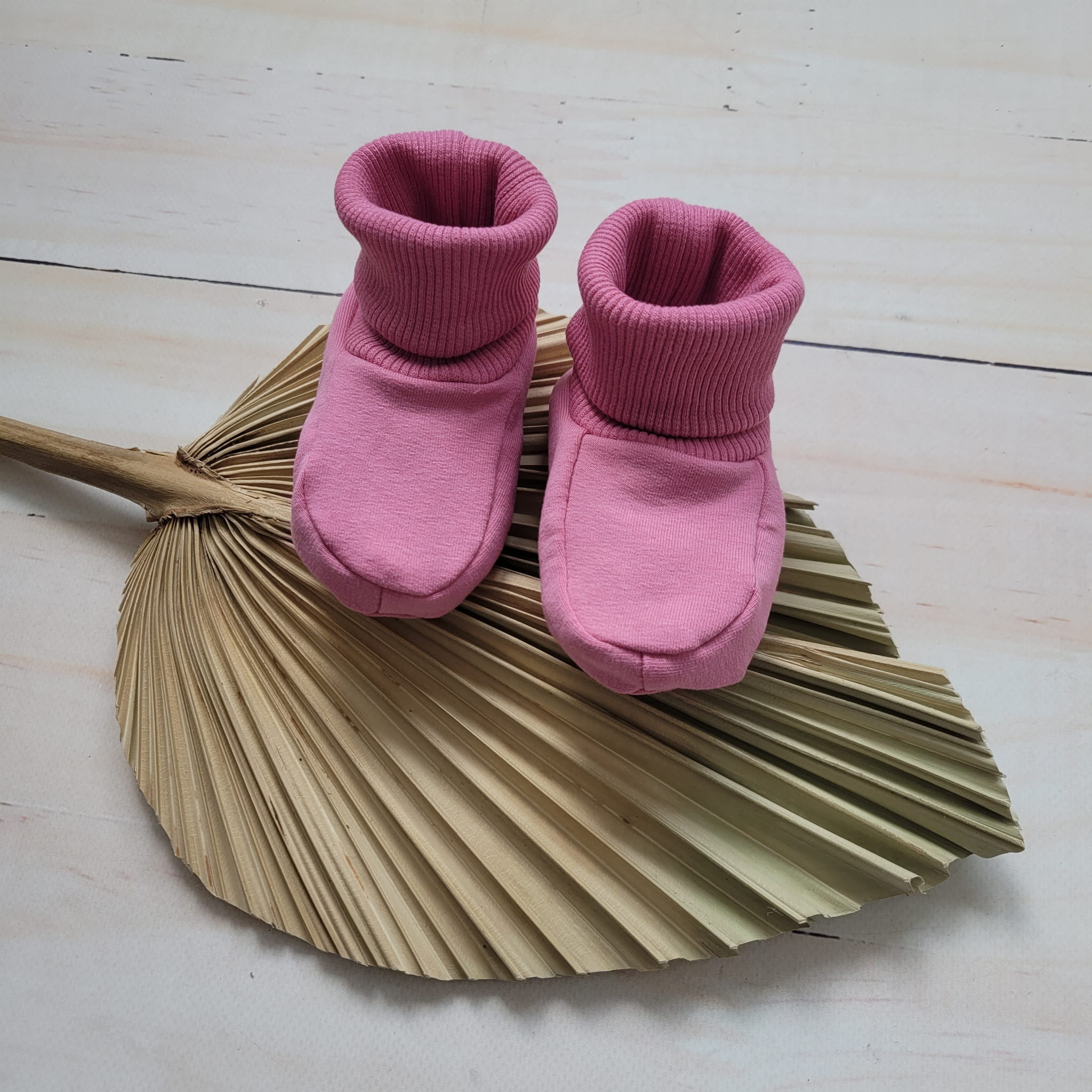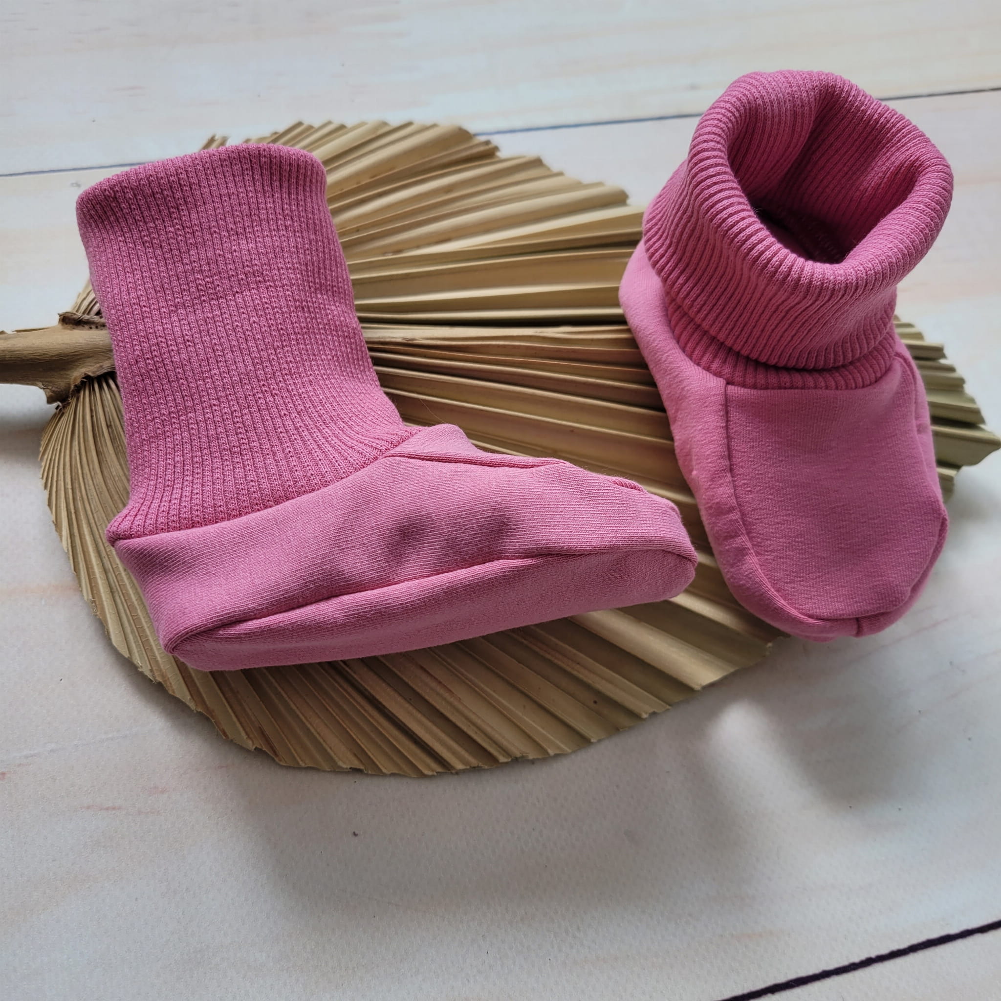 Buciki niemowlęce wykonane w kolorze rosy dream.
