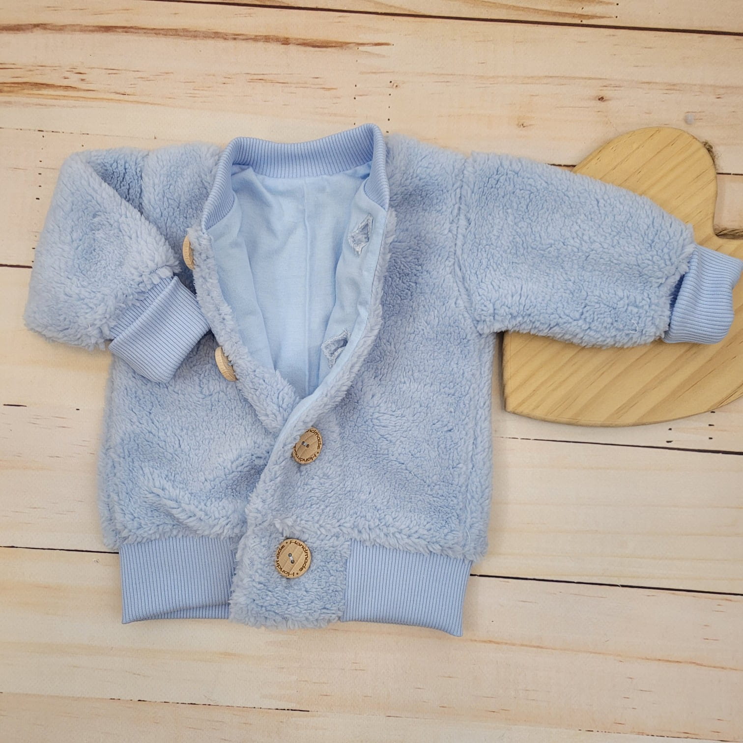 KAZUM Ciepła kurtka sweterek dziecięcy misiowy baranek wiosna jesień 56-86 blue dream