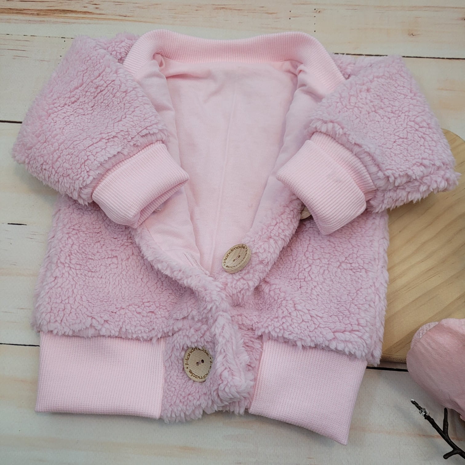 KAZUM Ciepła kurtka sweterek dziecięcy misiowy baranek wiosna jesień 56-86 pinky rose
