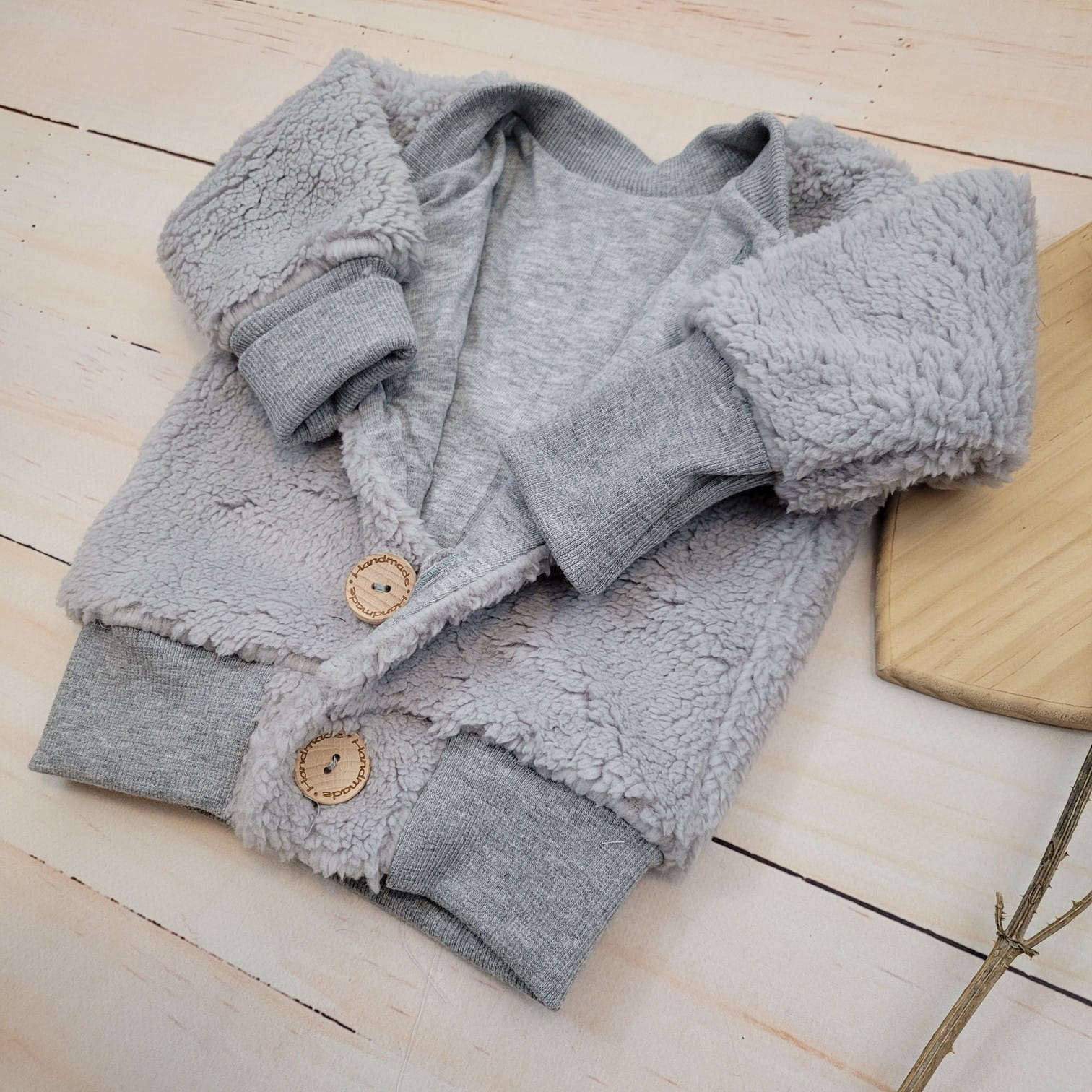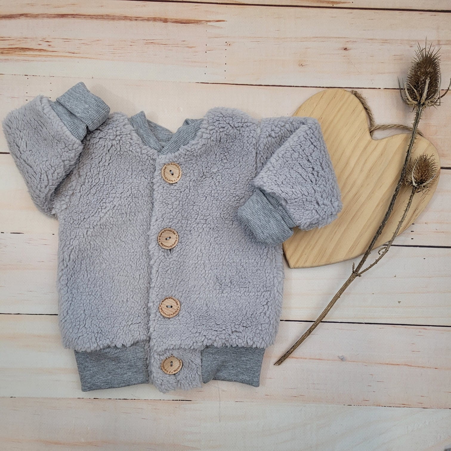 KAZUM Ciepła kurtka sweterek dziecięcy misiowy baranek wiosna jesień 56-86 silver mist