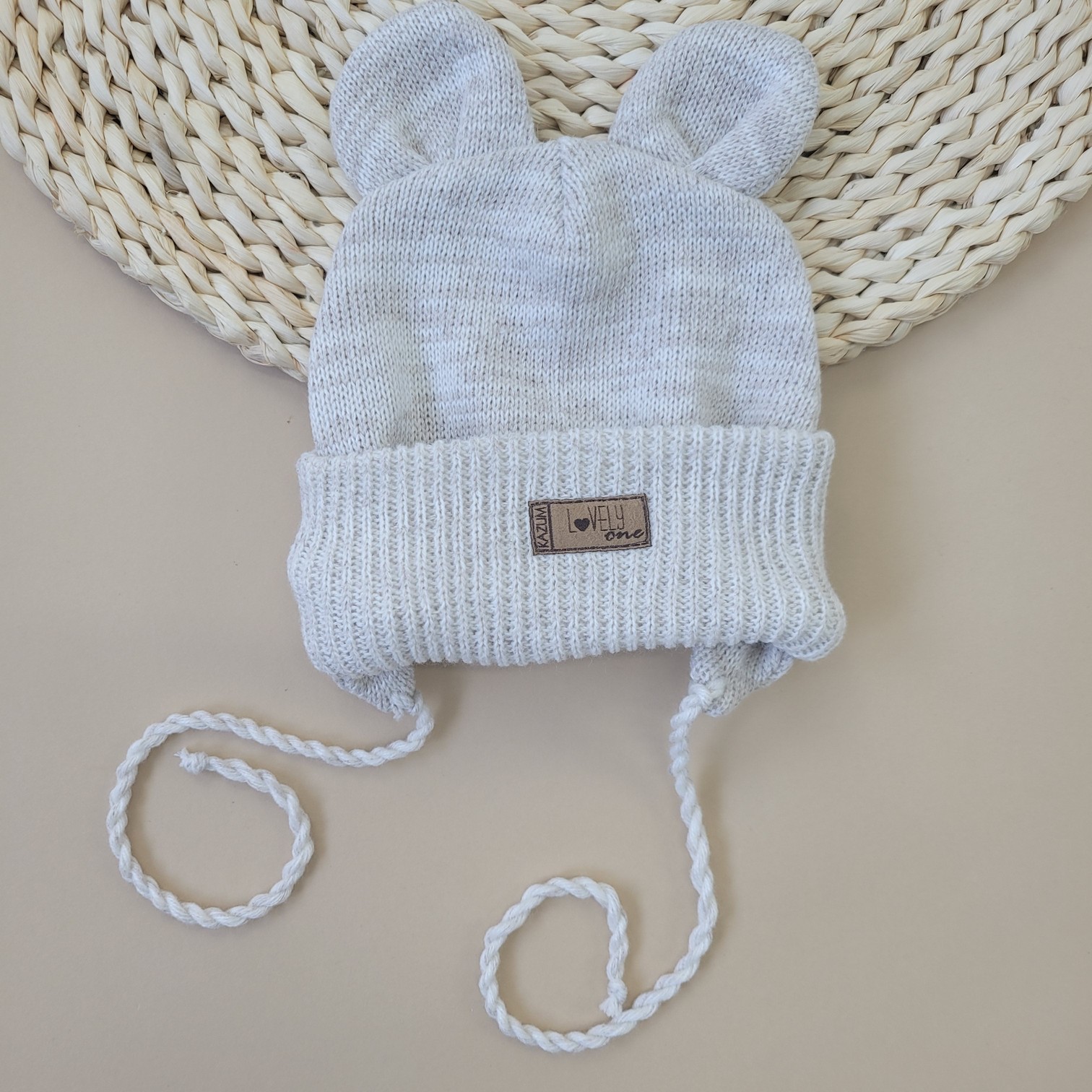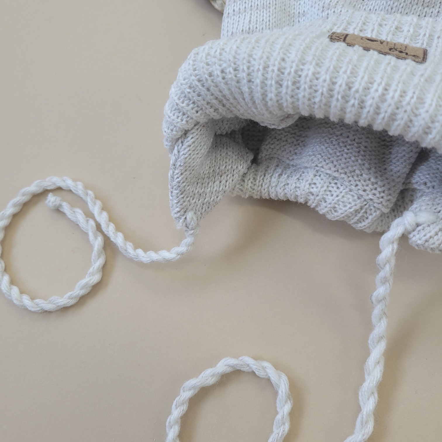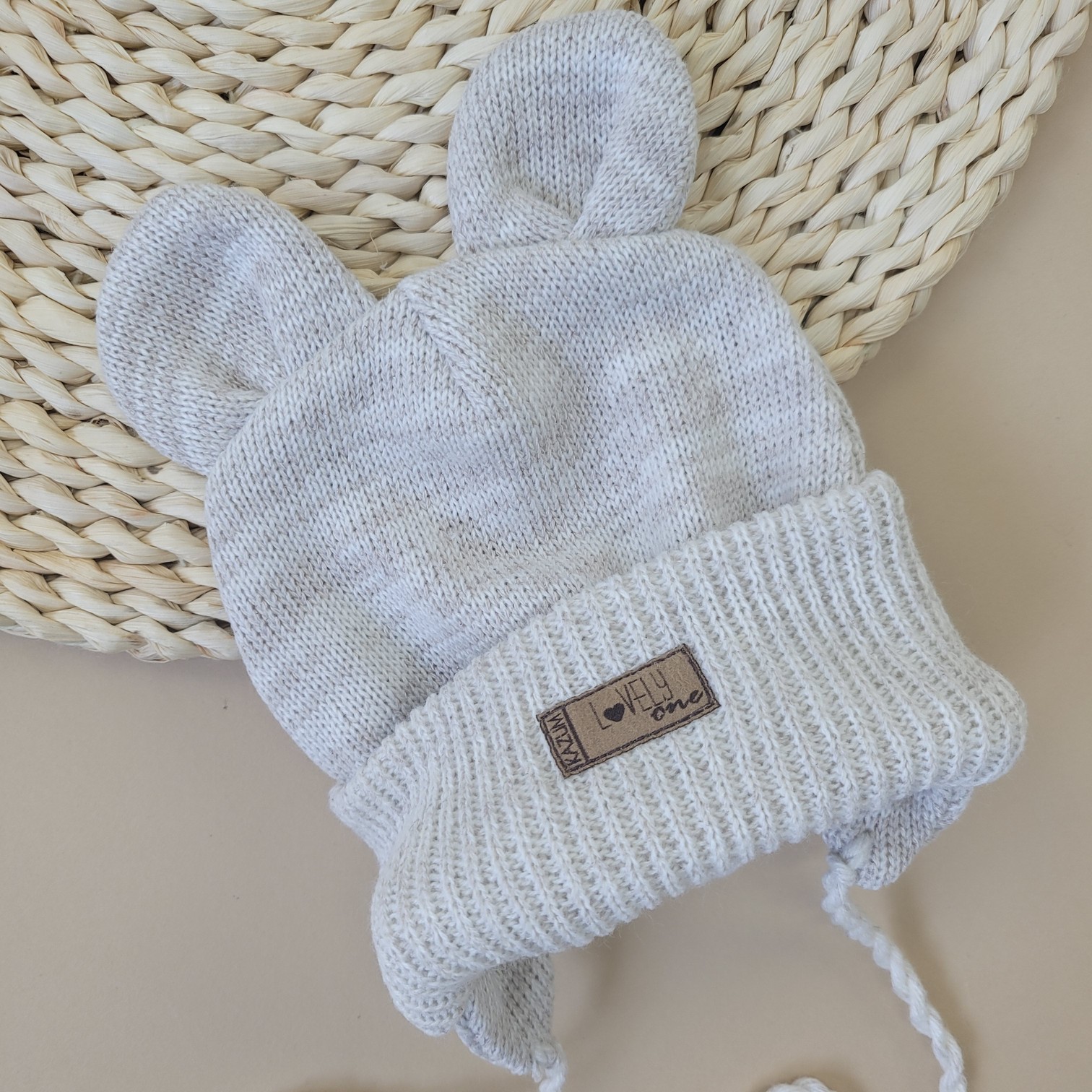 KAZUM Czapka niemowlęca włóczkowa wiązana z uszkami 56-86 cappuccino