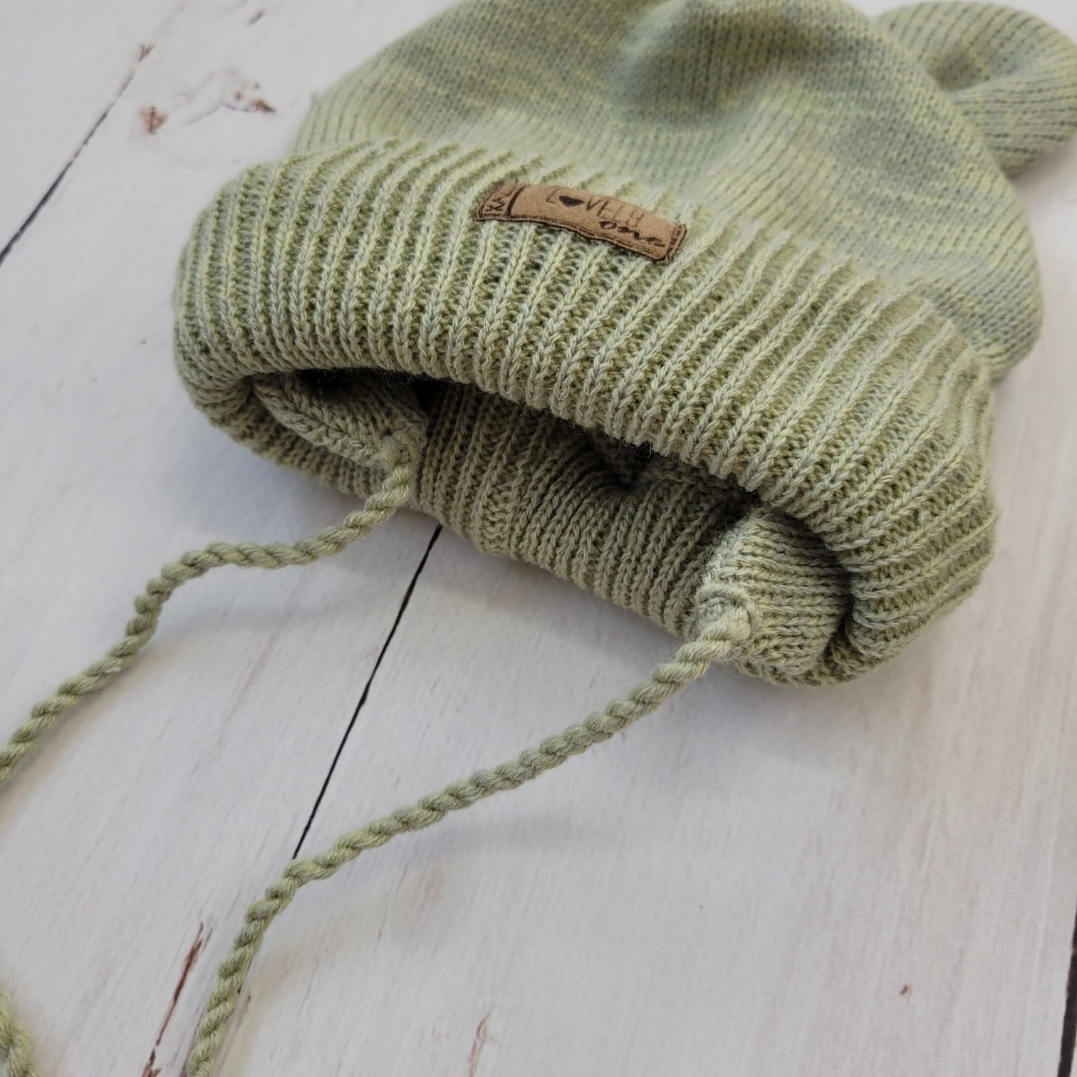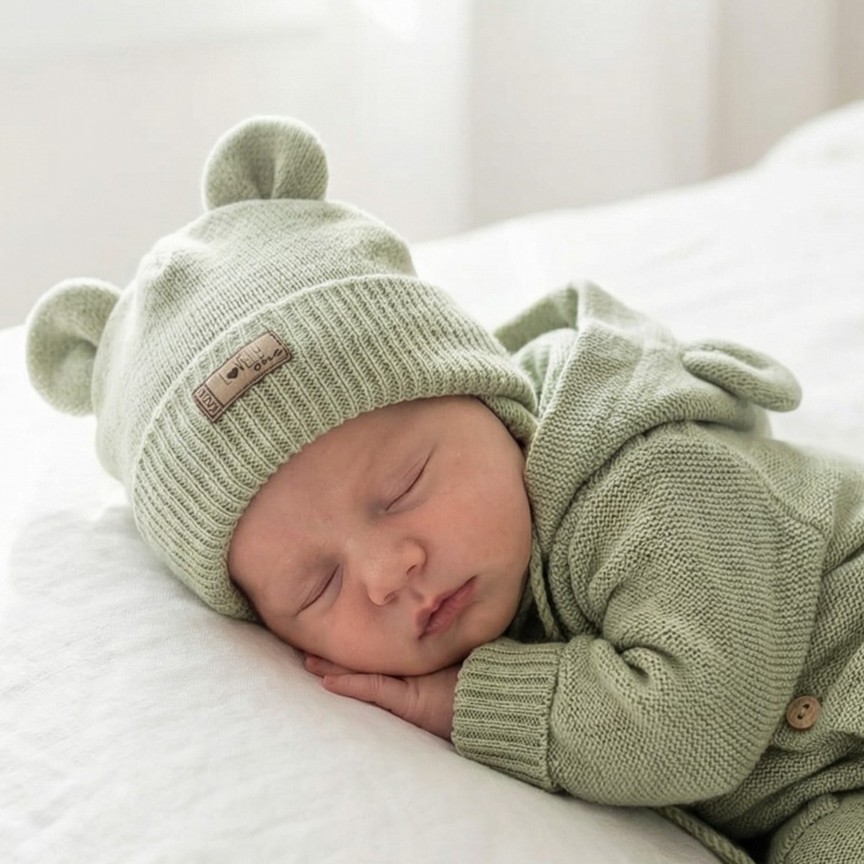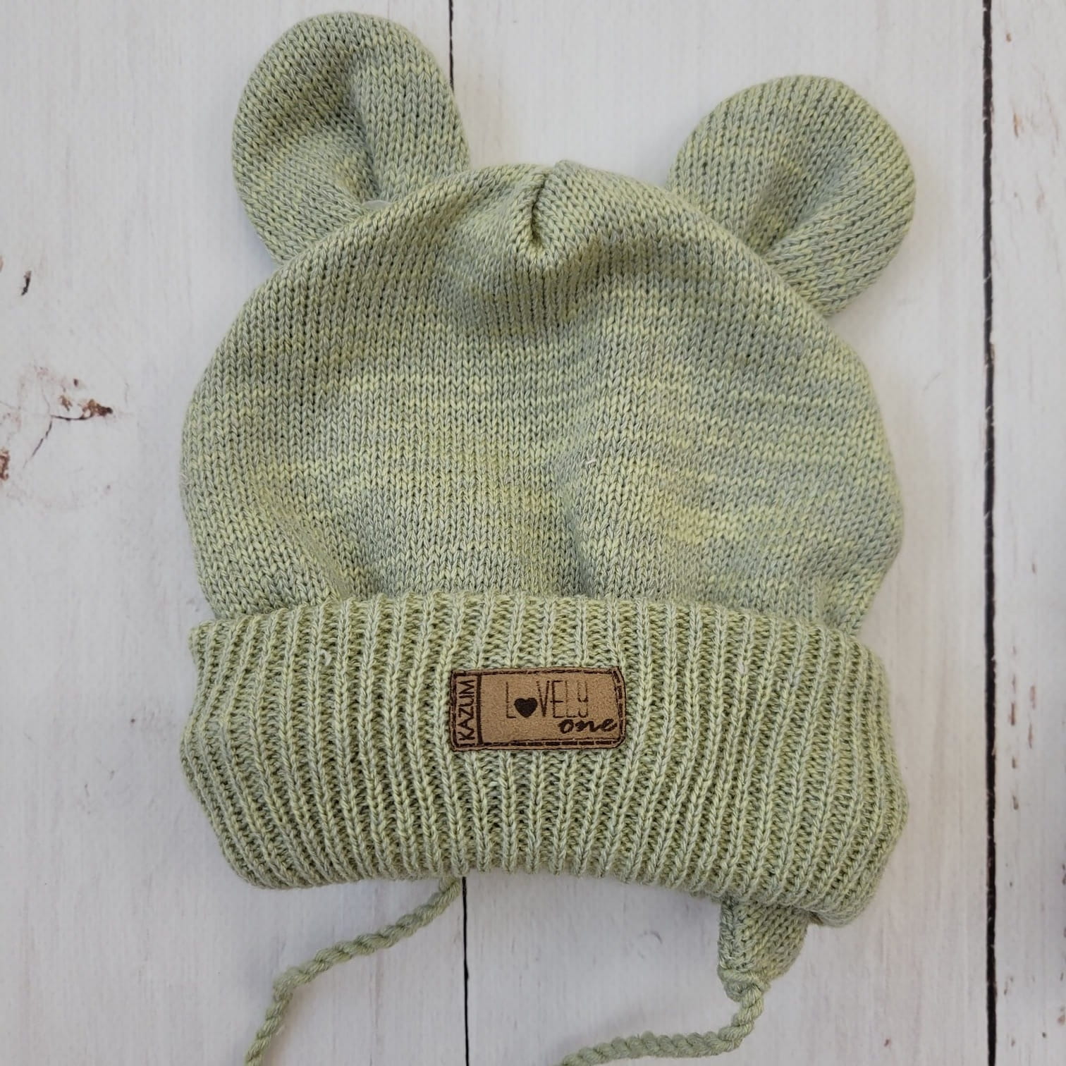 KAZUM Czapka niemowlęca włóczkowa wiązana z uszkami 56-86 olive green