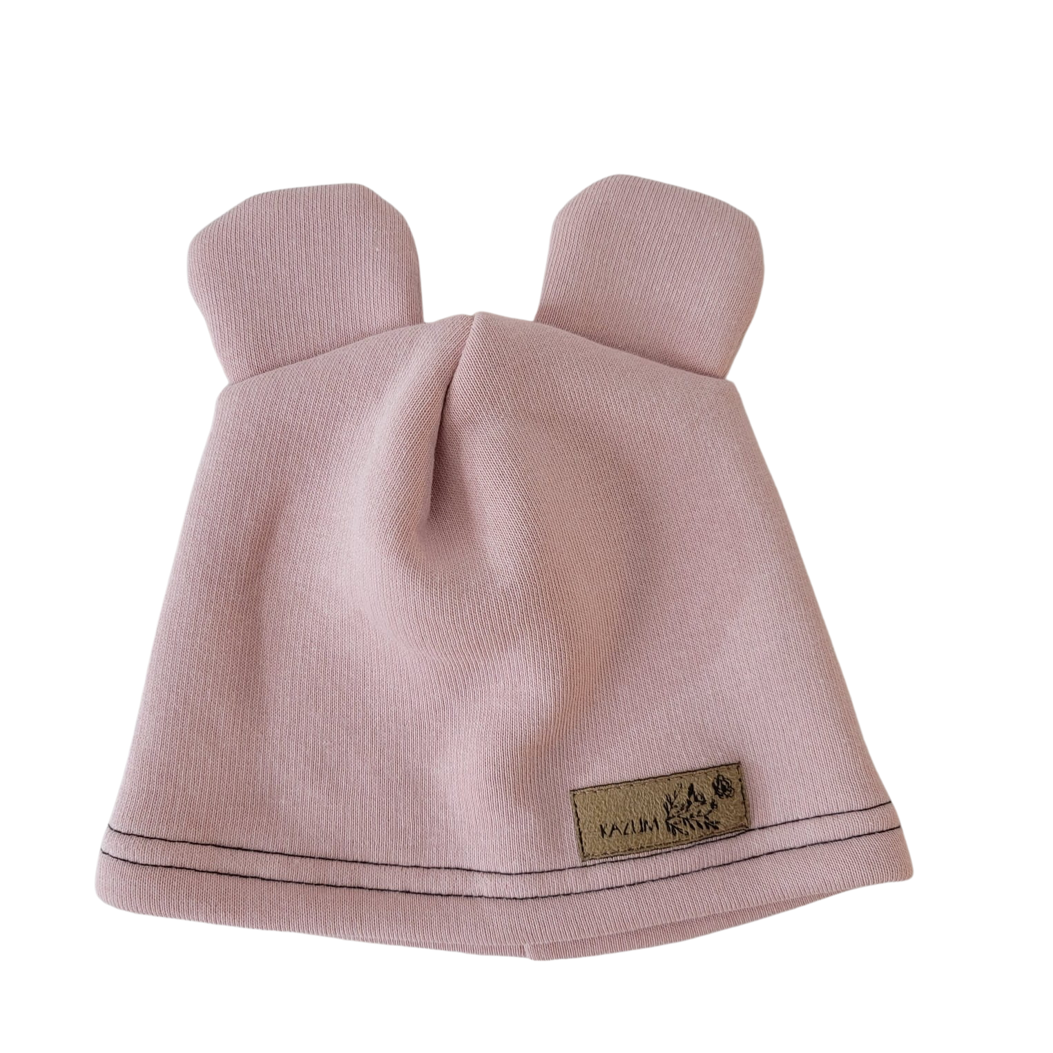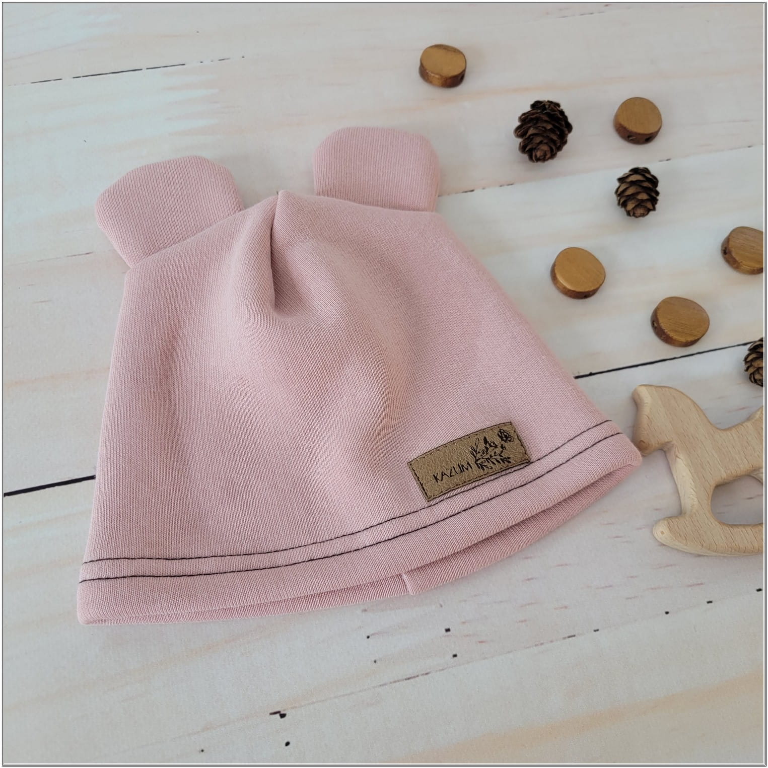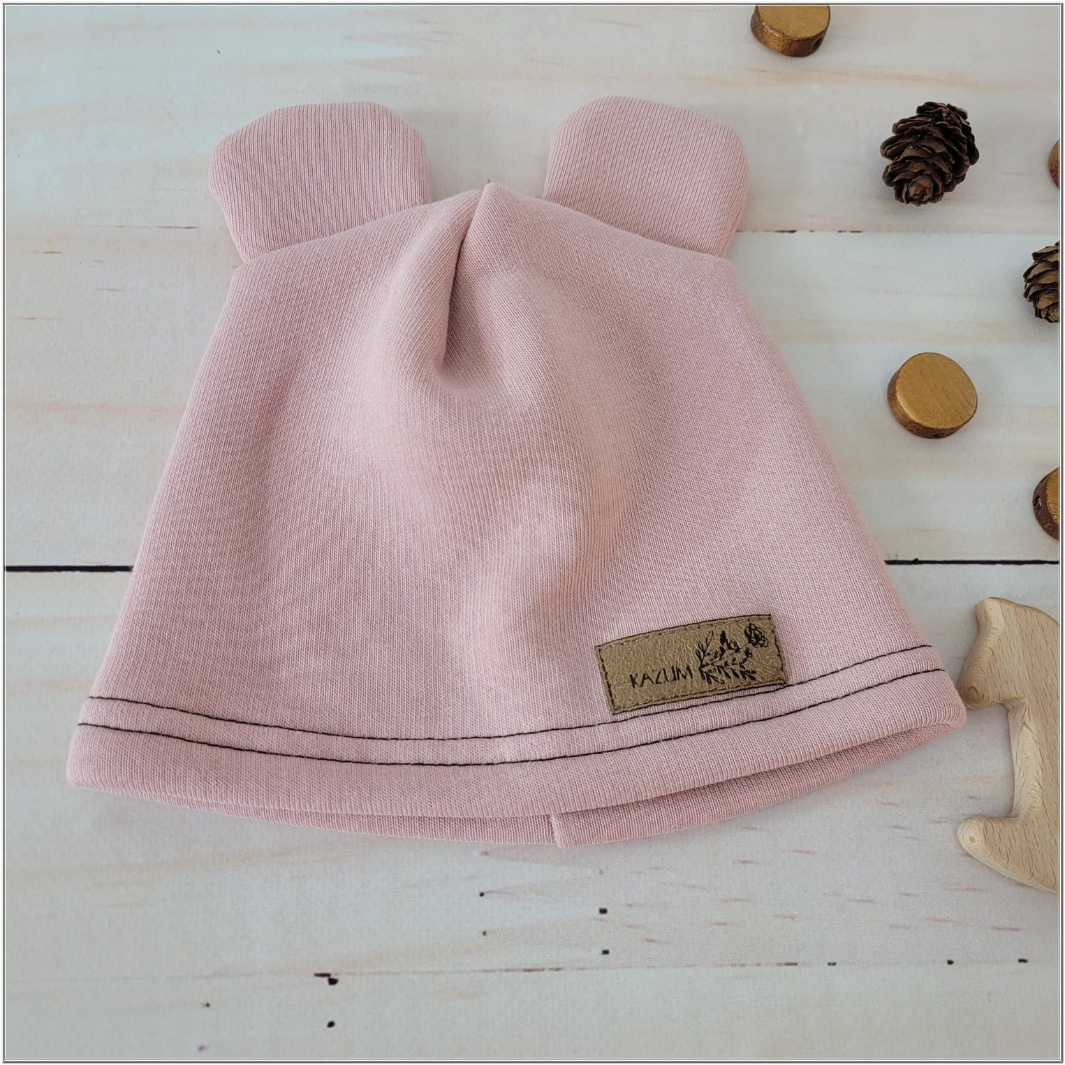 KAZUM Czapka z uszkami z dresówki ocieplanej 56-86 powder pink