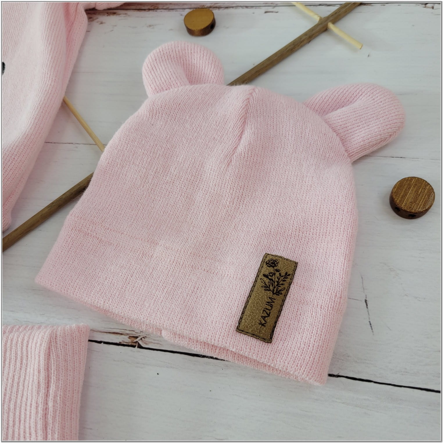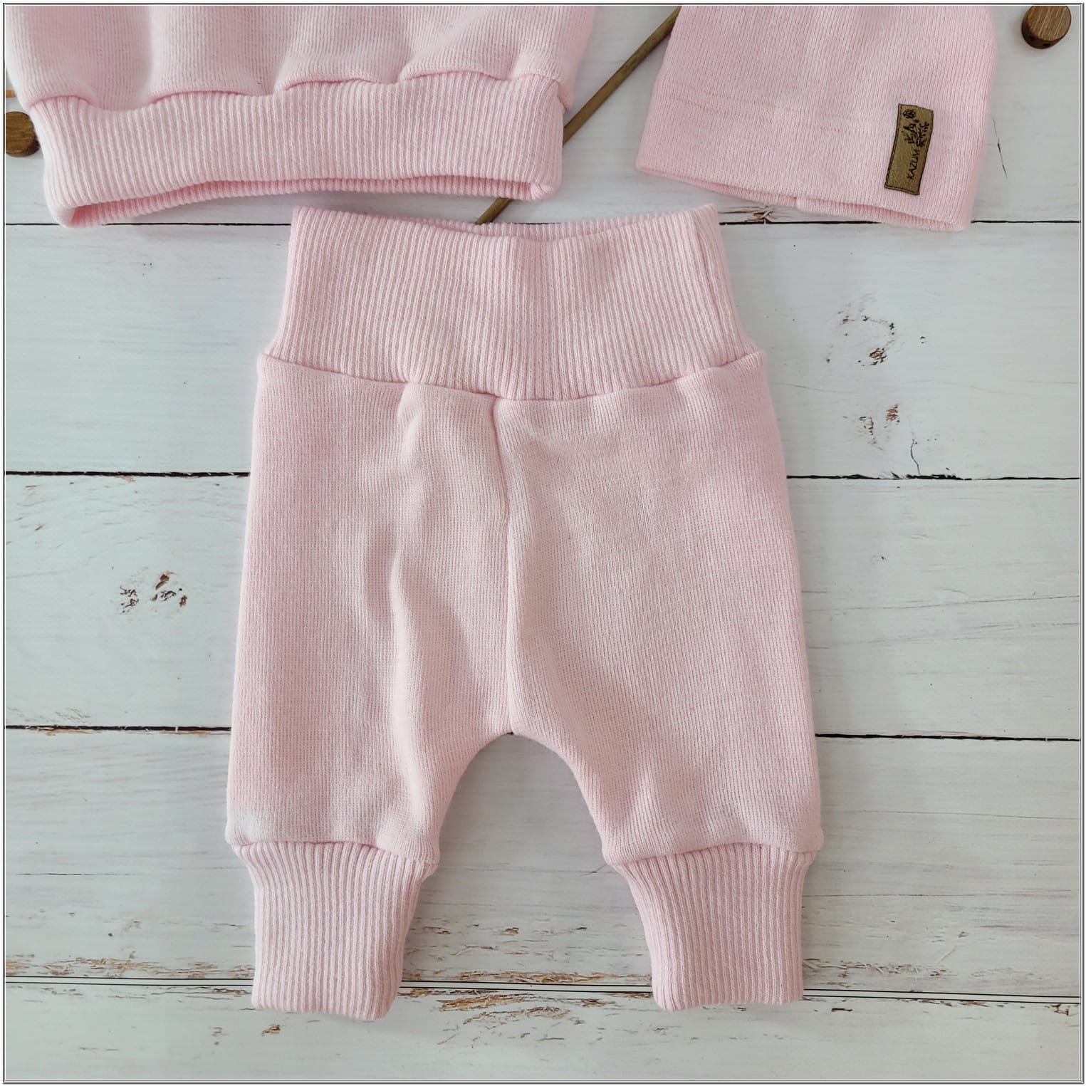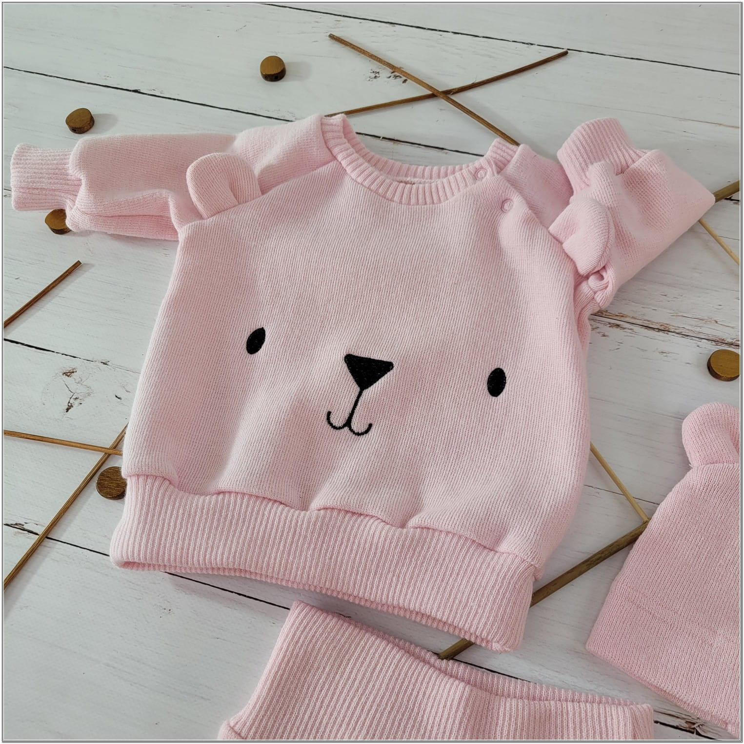 KAZUM Dres bluza oversize + spodnie + czapka z włóczki 56-86 baby rose