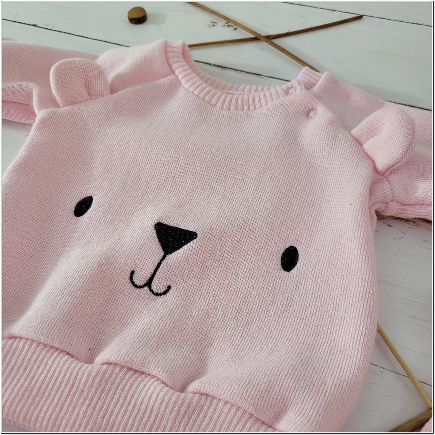 Komplet bluza z uroczymi uszkami, spodnie i czapka idealnie sprawdzą się na wiosenne spacery.