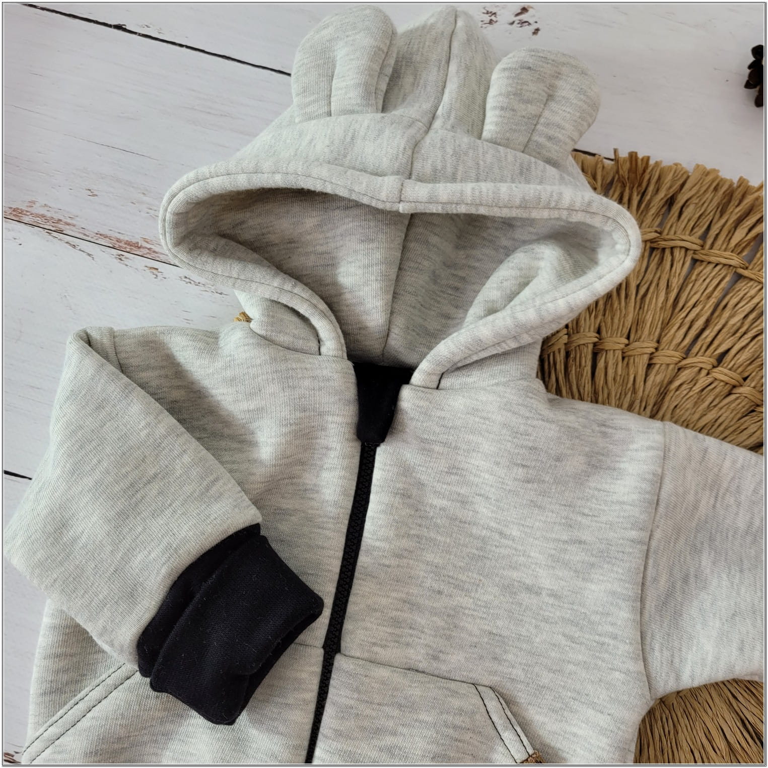 Dres niemowlęcy, dziecięcy bawełniany z dresówki ocieplanej to idealny wybór na każdą chłodną porę roku. Ten uroczy komplet składa się z bluzy z uszkami, rozpinanej na zamek oraz spodni dresowych. Całość jest wykonana z bawełny ocieplanej, która gwarantuje optymalne ciepło i komfort noszenia w chłodny i zimny dzień. Komplet jest bardzo wygodny i zapewnia odpowiednią swobodę ruchu dziecka podczas codziennych aktywności .
