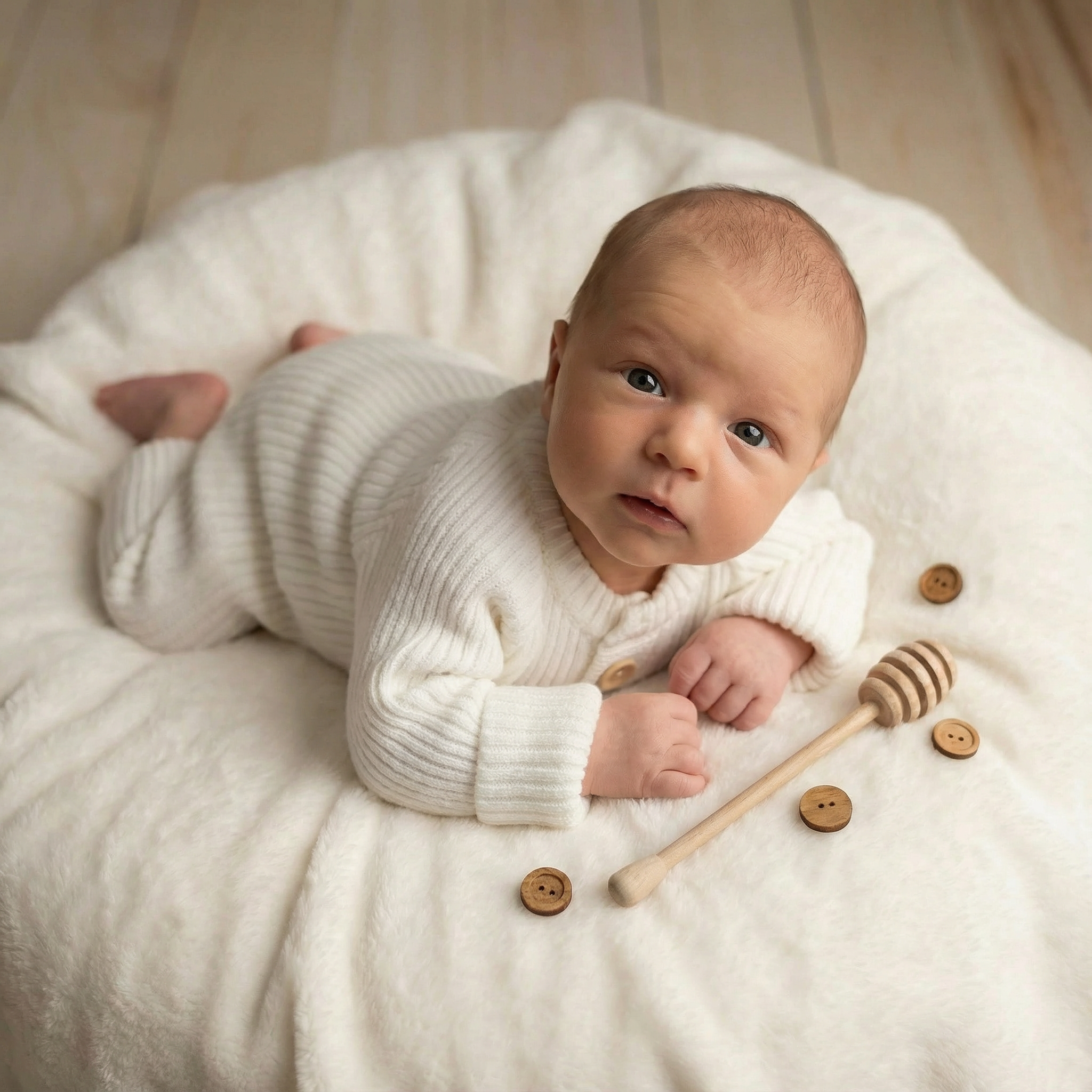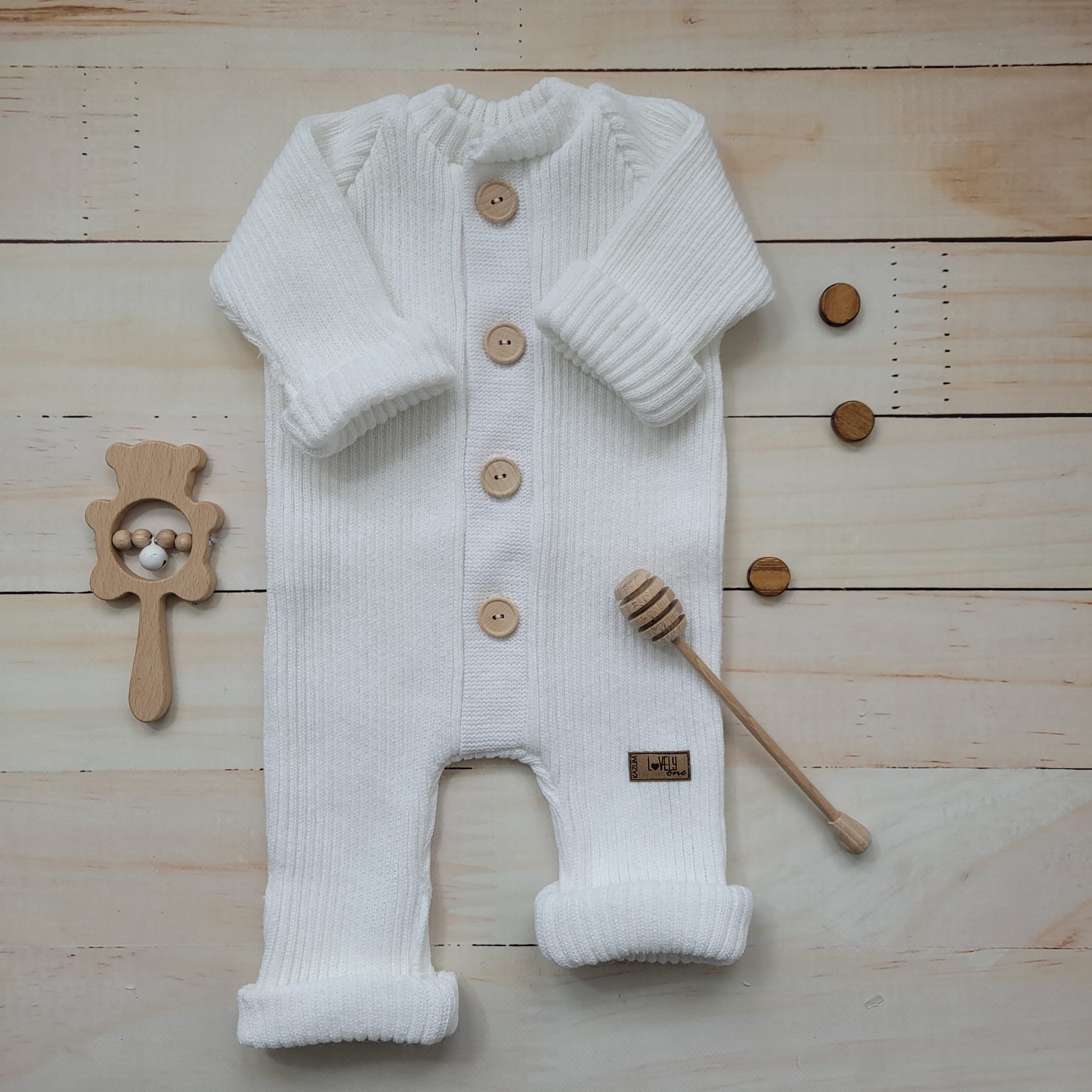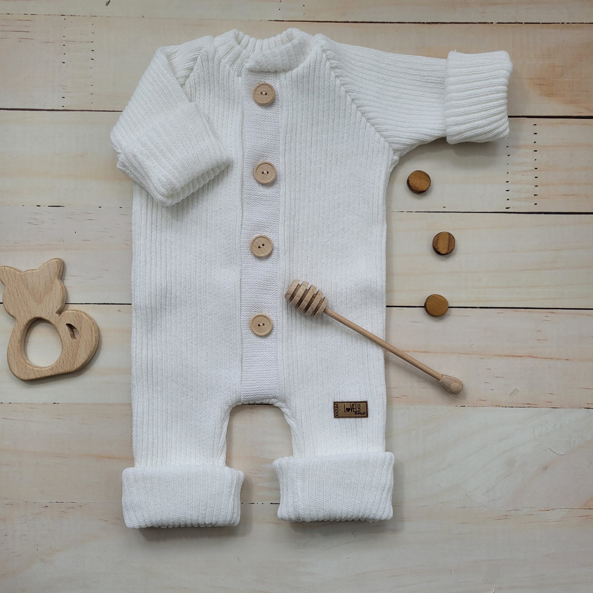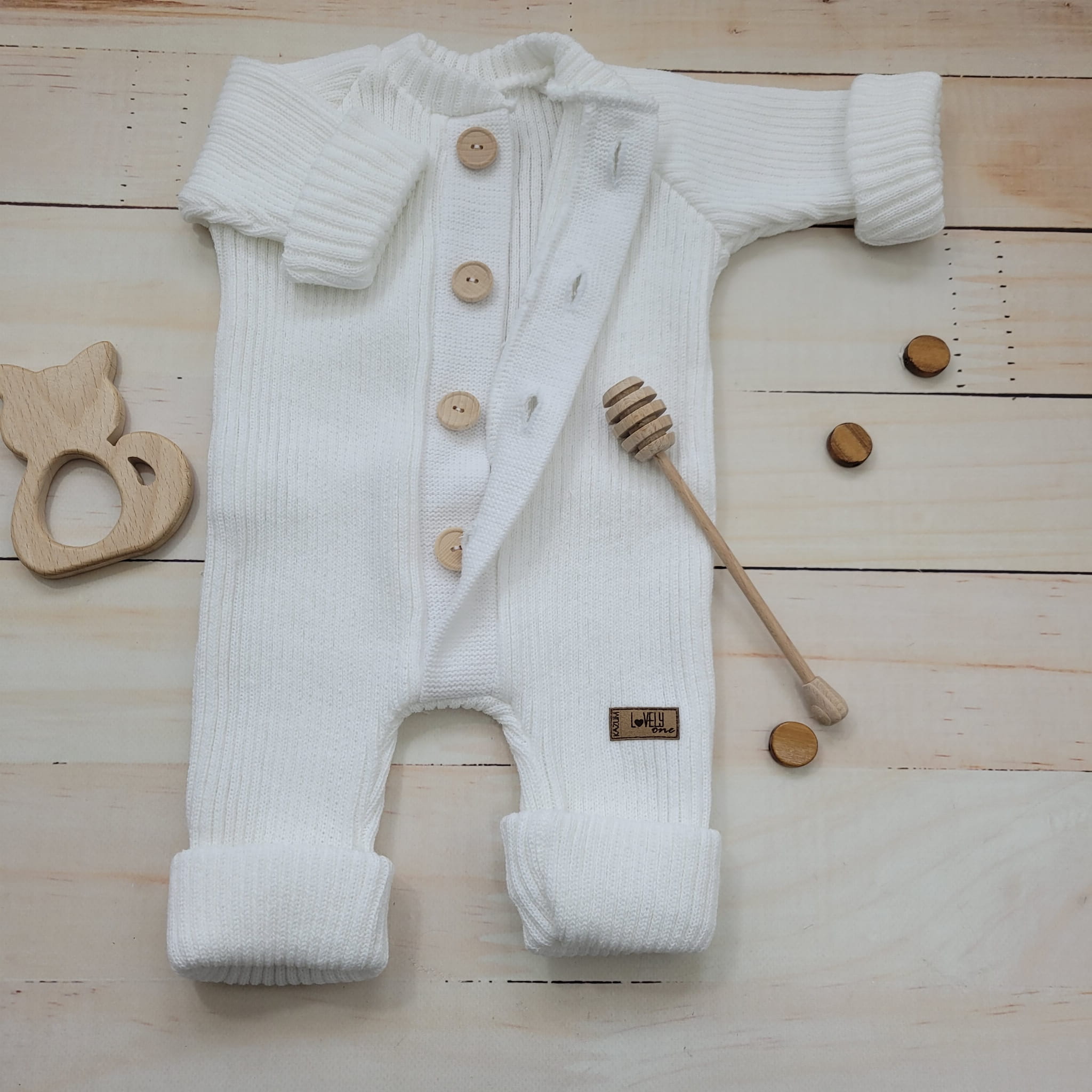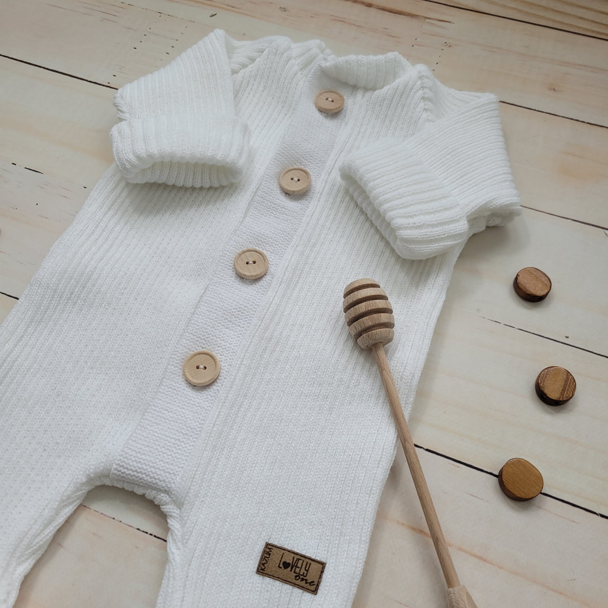 KAZUM Kombinezon pajac bez kaptura włóczkowy rosnący z dzieckiem 56-86 coconut
