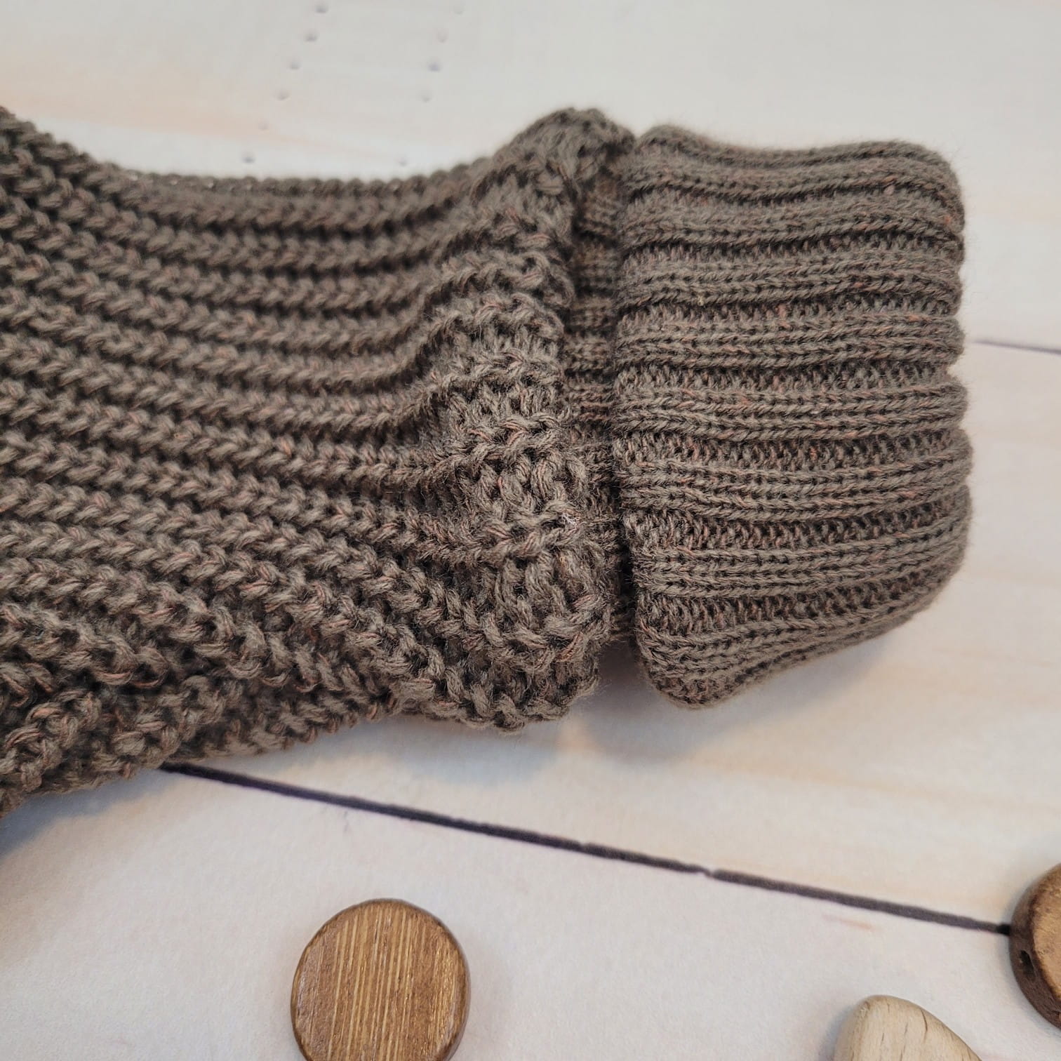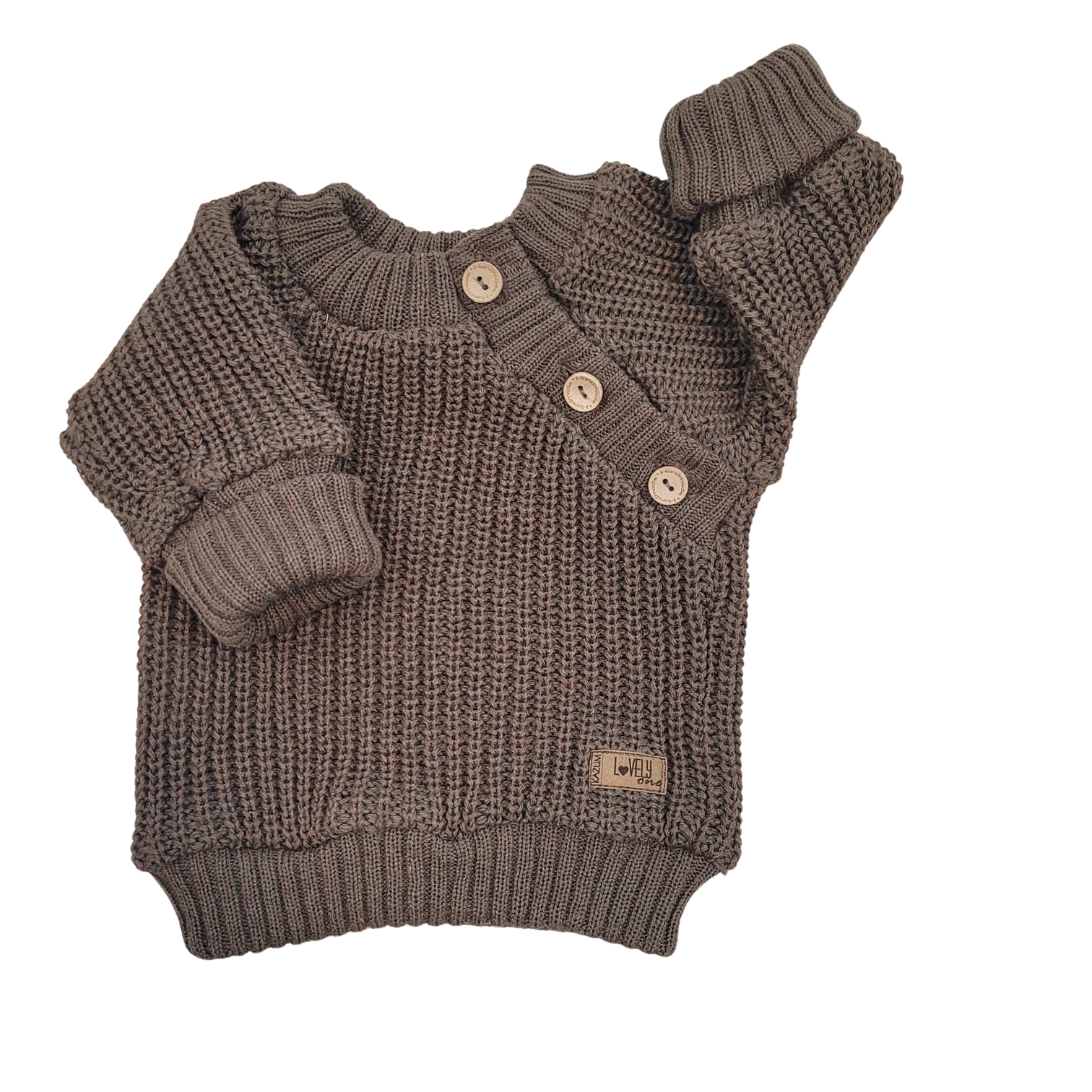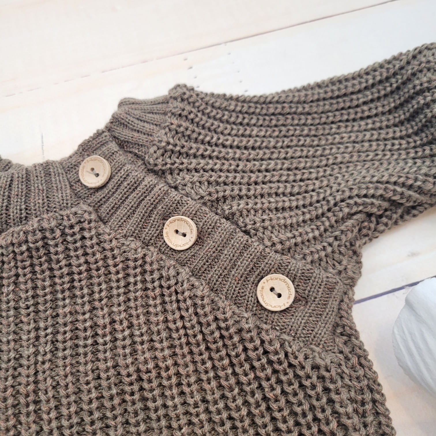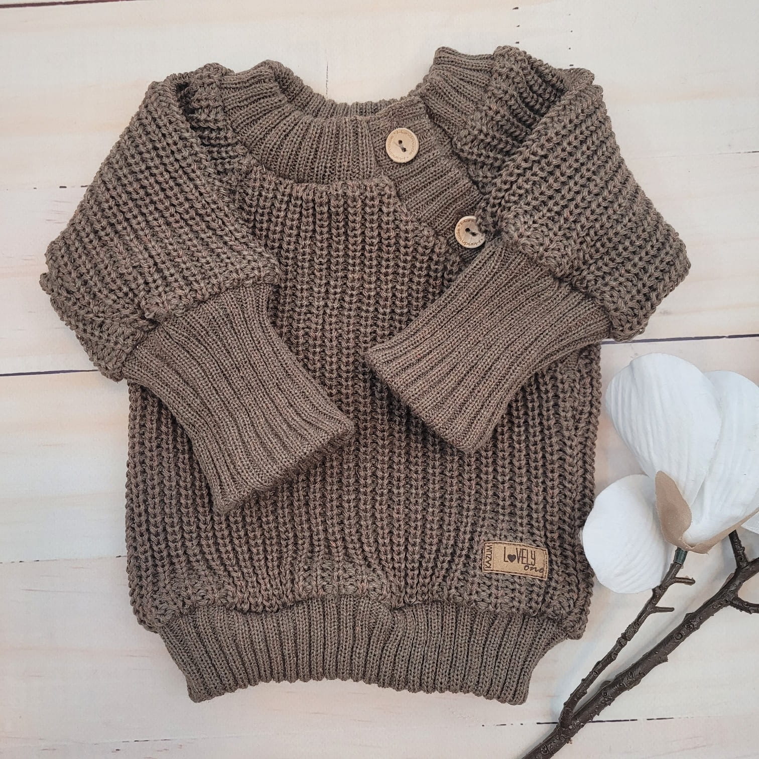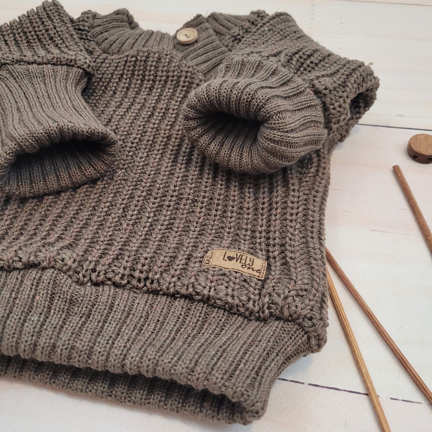KAZUM Sweterek włóczkowy dziergany ze ściągaczami i guziczkami 56-86 chocolate muffin
