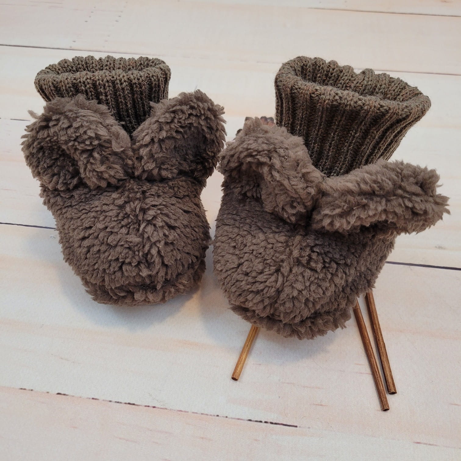 Są ozdobione uszkami, które czynią buciki jeszcze bardziej uroczymi.
