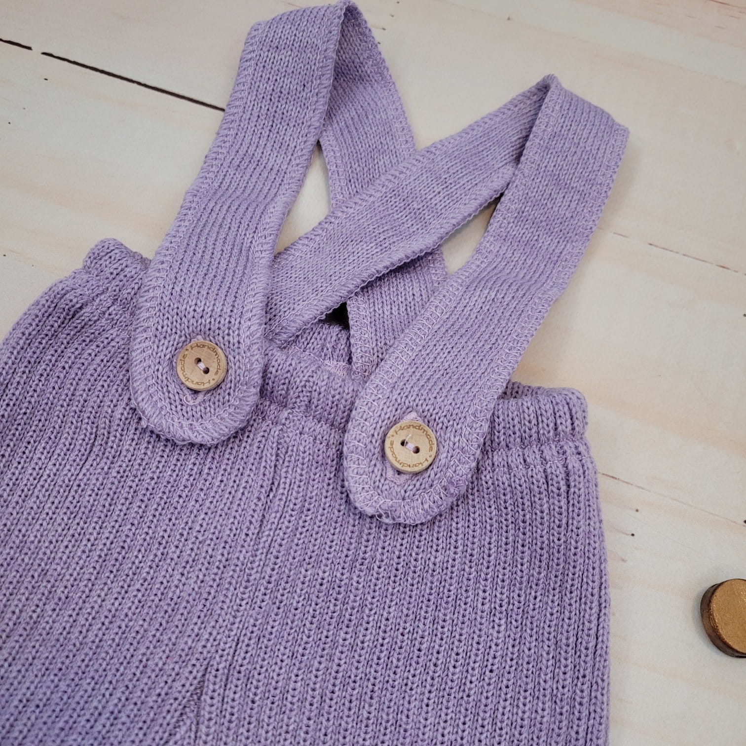 KAZUM Włóczkowe legginsy na szelkach, regulowane 56-86 sweet lila