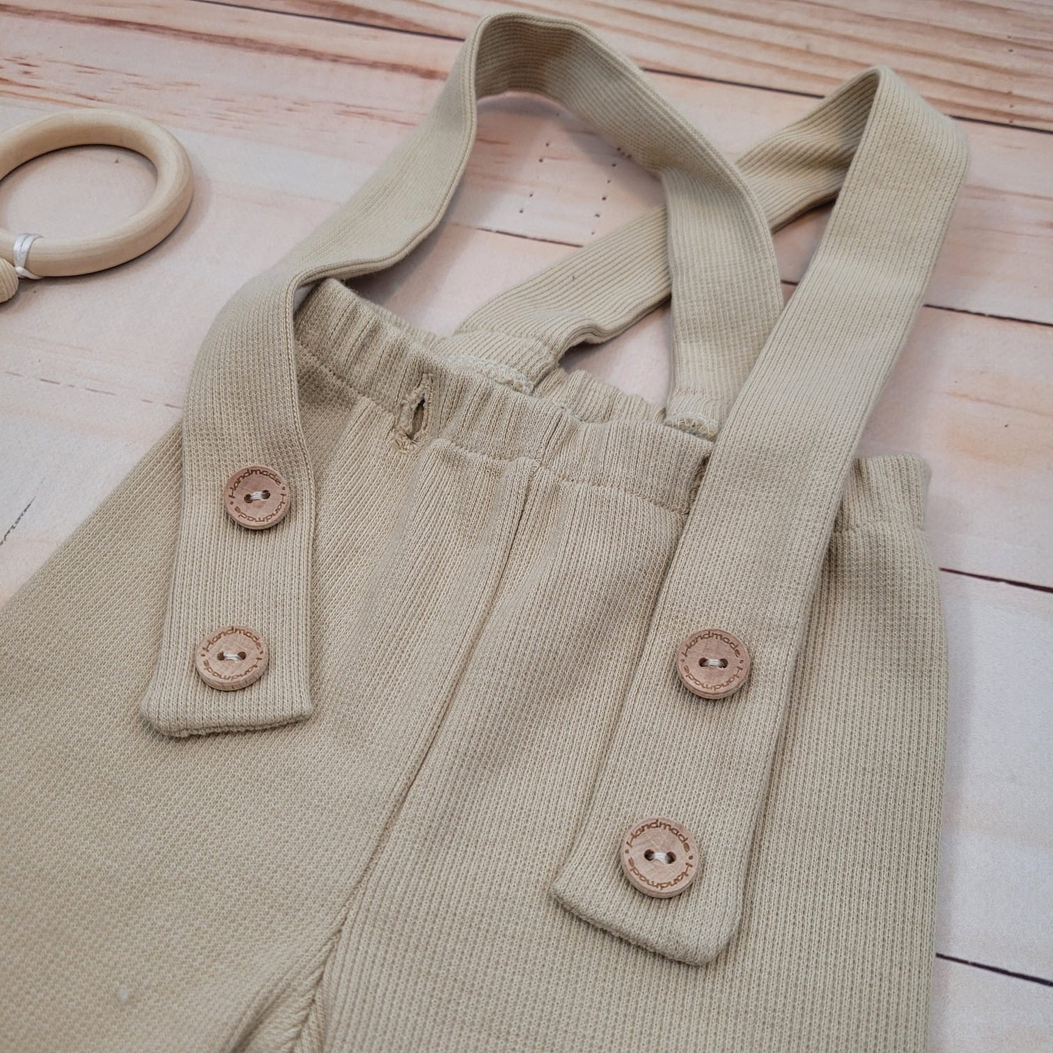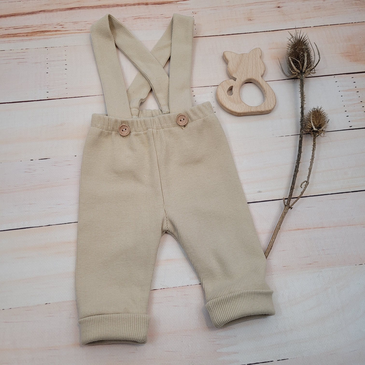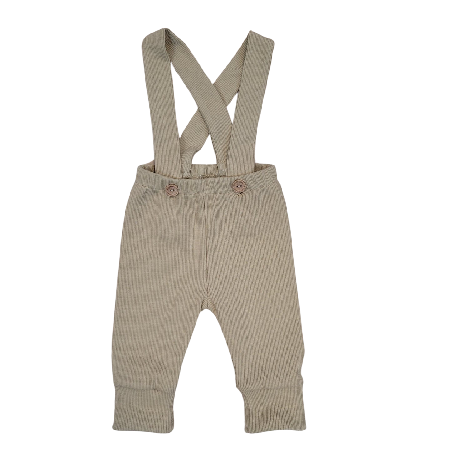 Prążkowane legginsy, spodnie na szelkach w beżowym kolorze to doskonałe rozwiązanie łączące wygodę i styl.