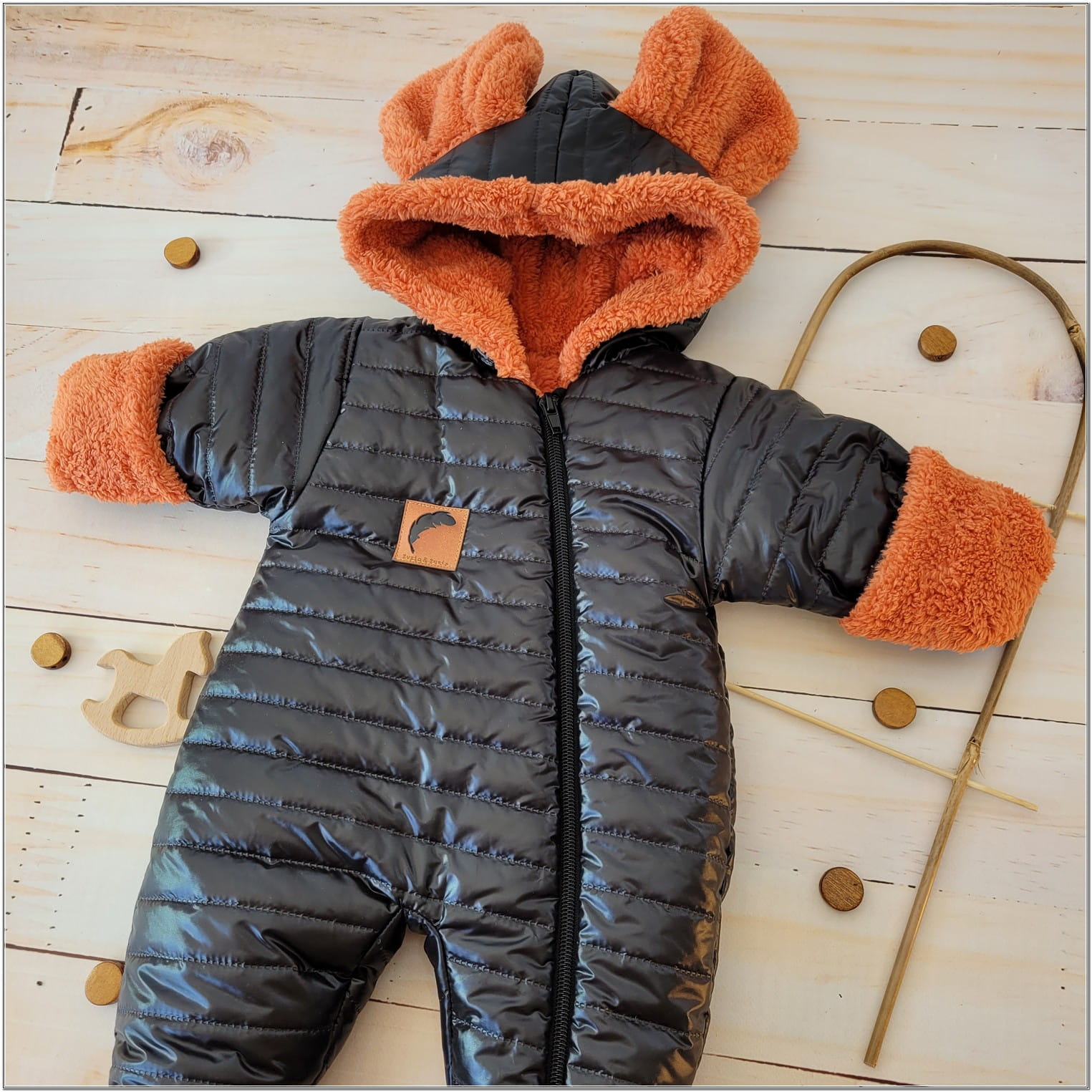 Gruby, ocieplany kombinezon zimowy z kapturem.