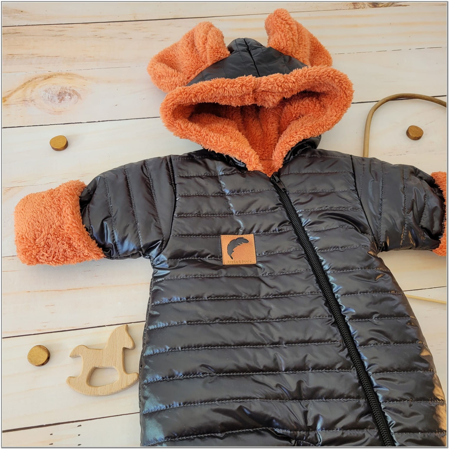 Kombinezon jest w kolorze czarnym. Do kombinezonu zaszyte wywijane rękawiczki.