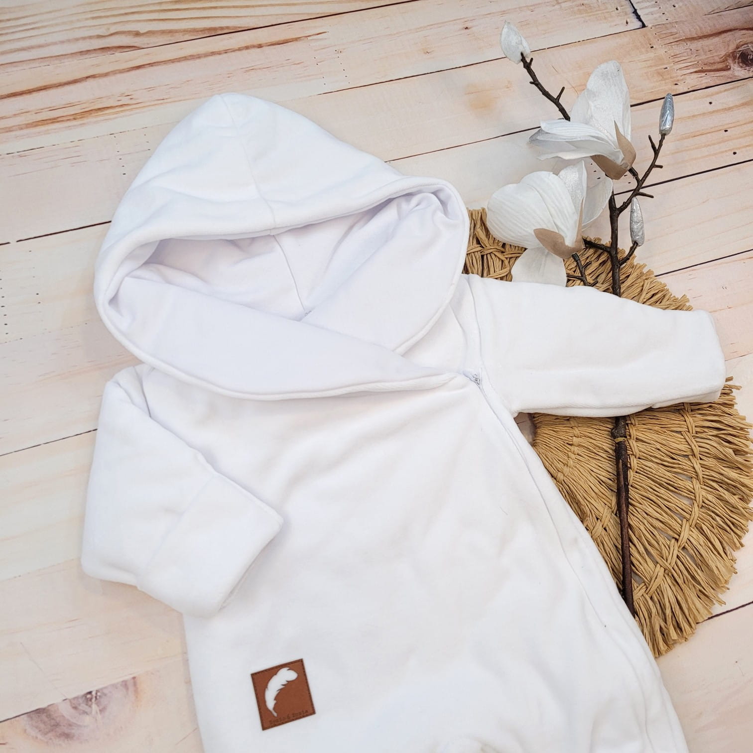 Kombinezon zimowy welurowy niemowlęcy ocieplany na chrzest 56-86 biały