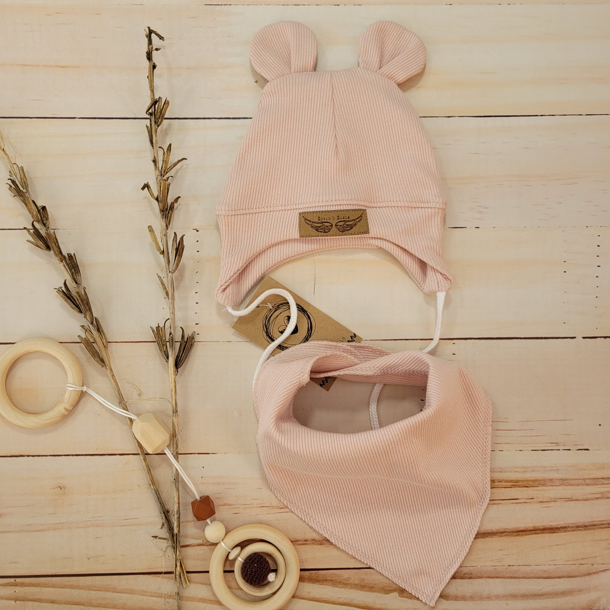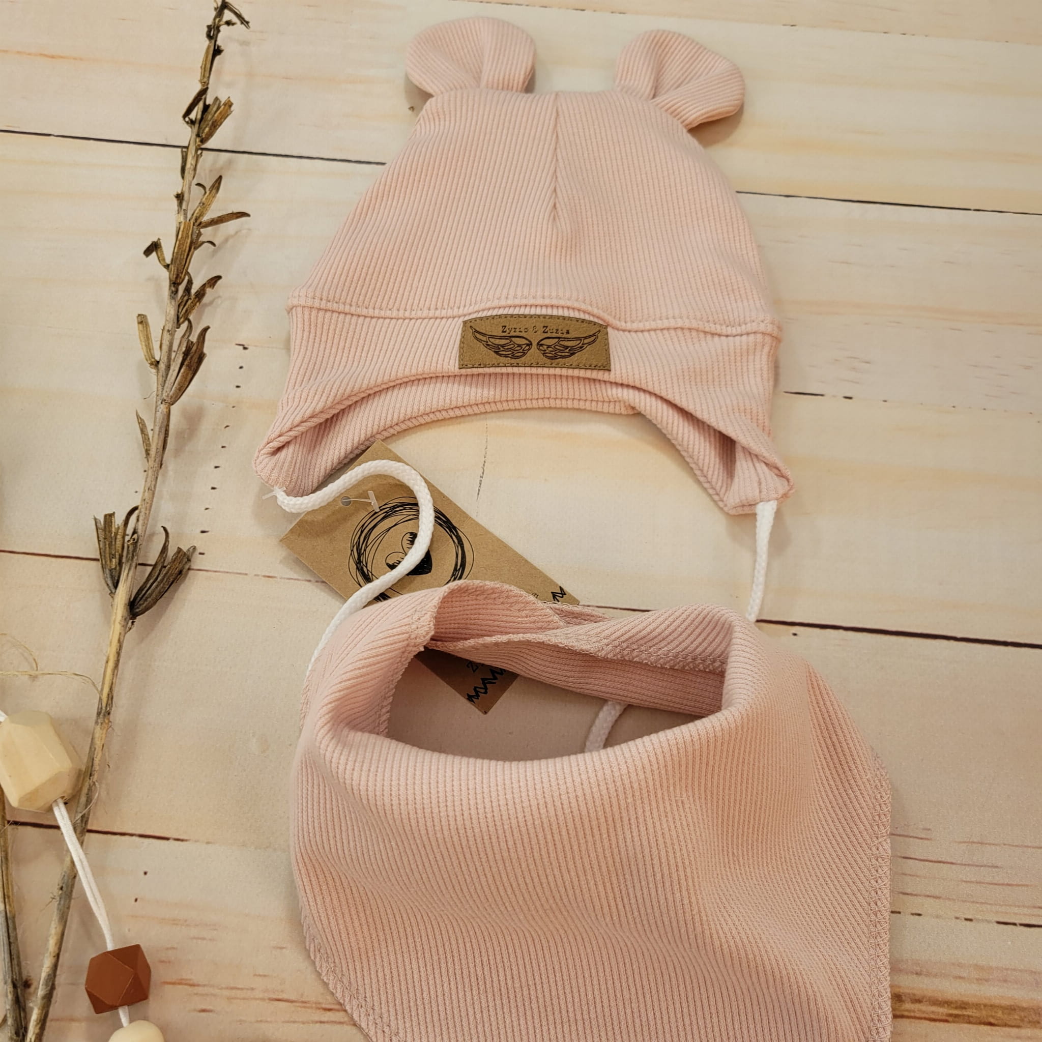 Czapka prążkowana podwójna bawełniana z uszkami + apaszka to idealny komplet na chłodne dni.