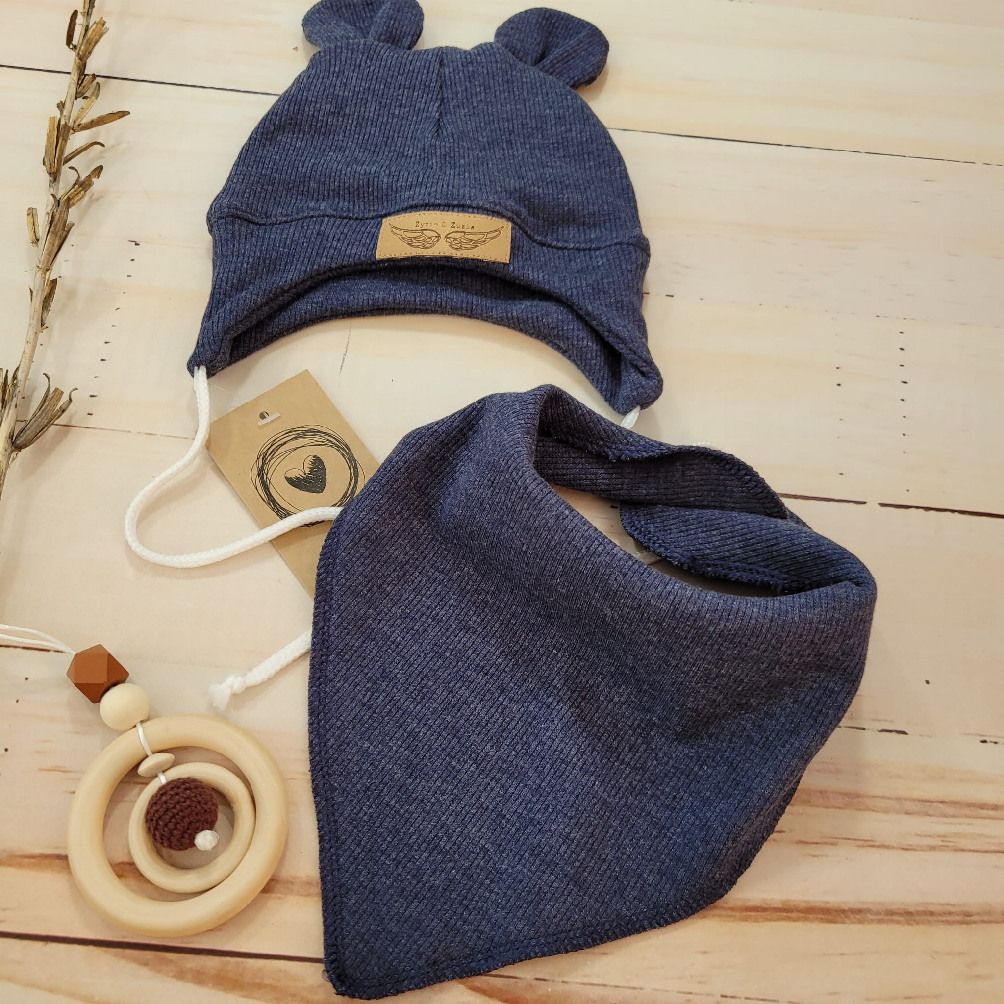 Czapka prążkowana podwójna bawełniana z uszkami + apaszka to idealny komplet na chłodne dni.