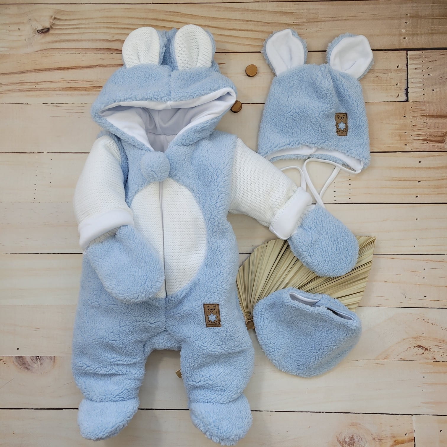 Komplet misiowy kombinezon + czapka + apaszka 56-86 niebieski