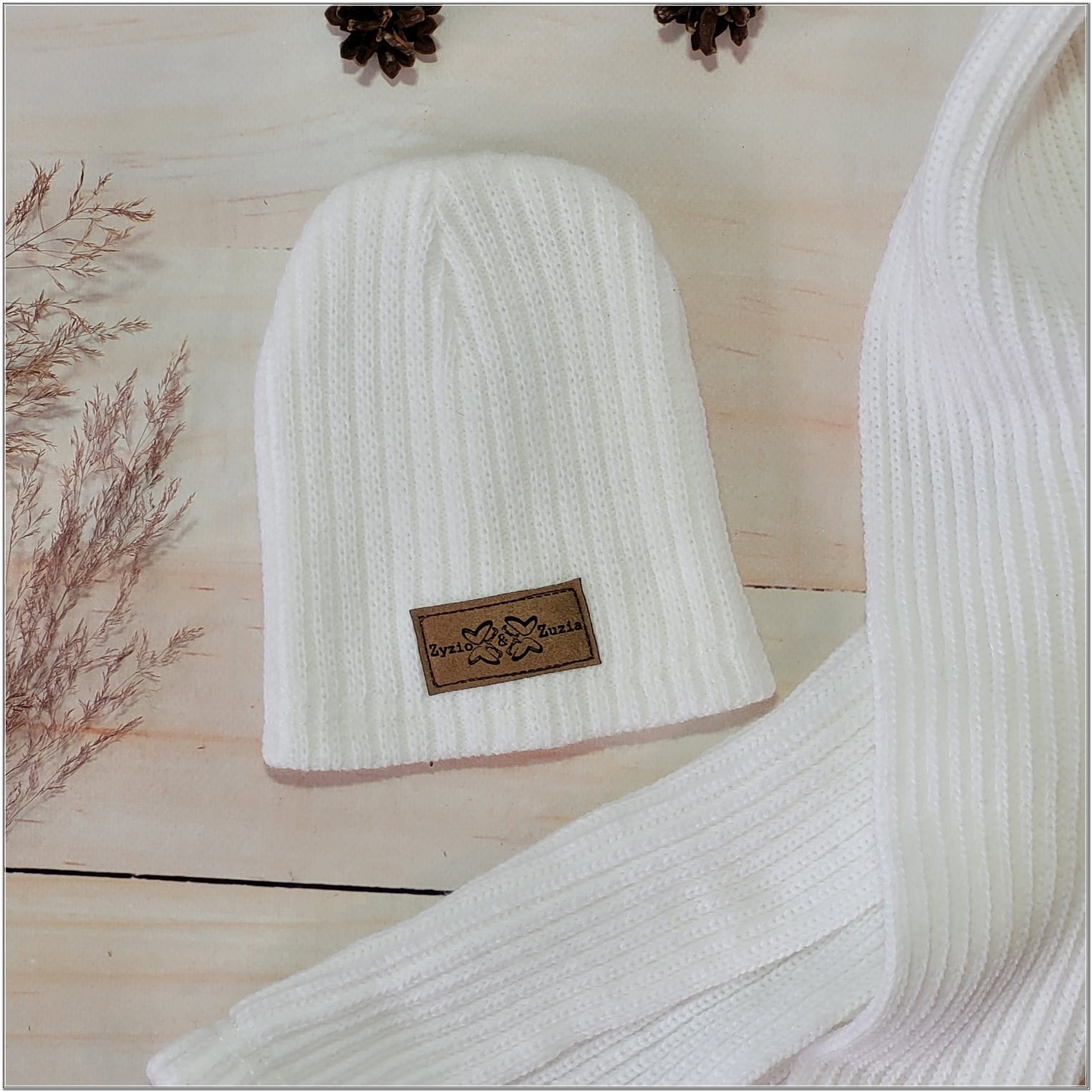 Komplet czapka z szalikiem włóczkowe, dziergane