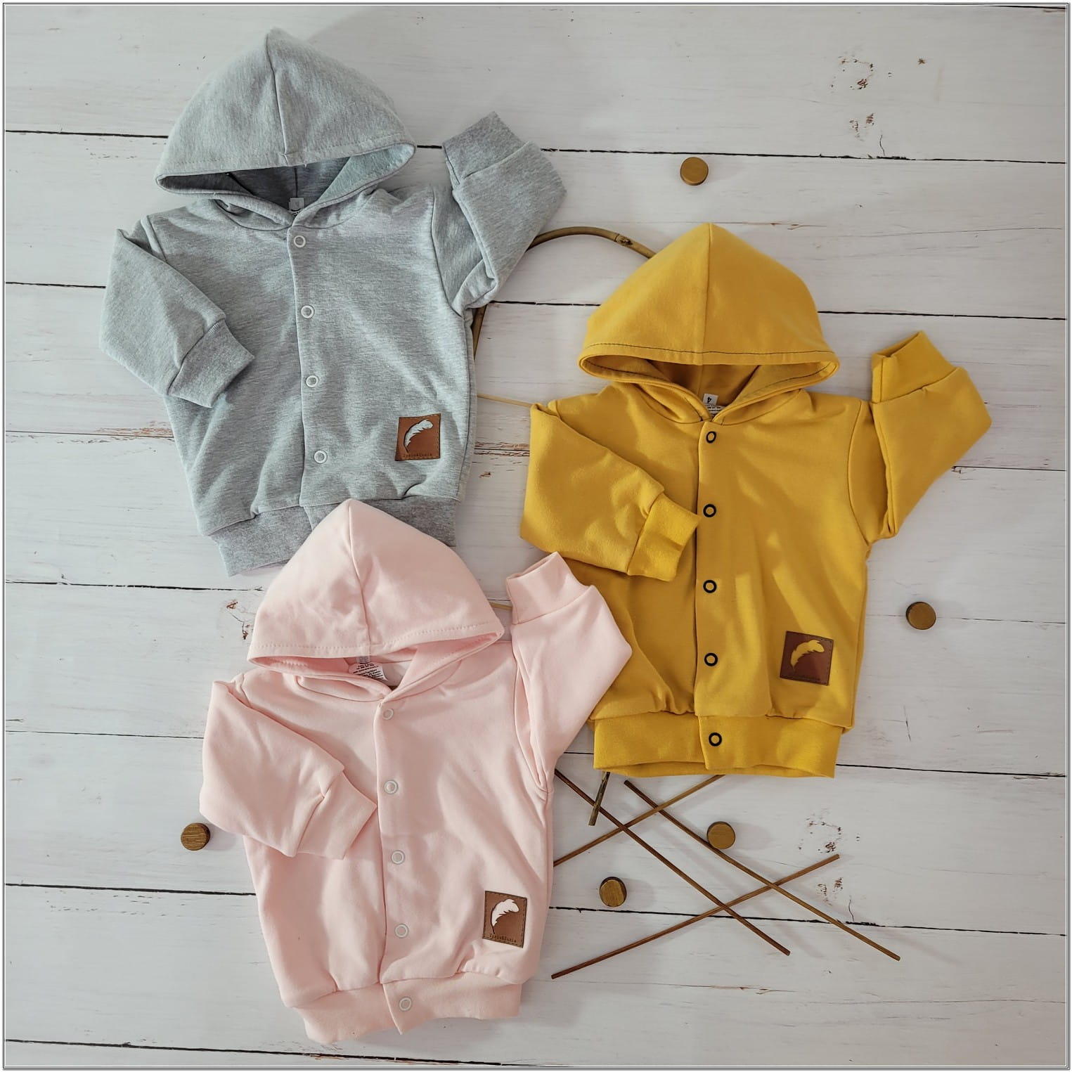 Kurtka posiada kaptur. Jest dwuwarstwowa, Z zewnątrz bawełna dresówka pętelka, a od spodu podszewka bawełniana