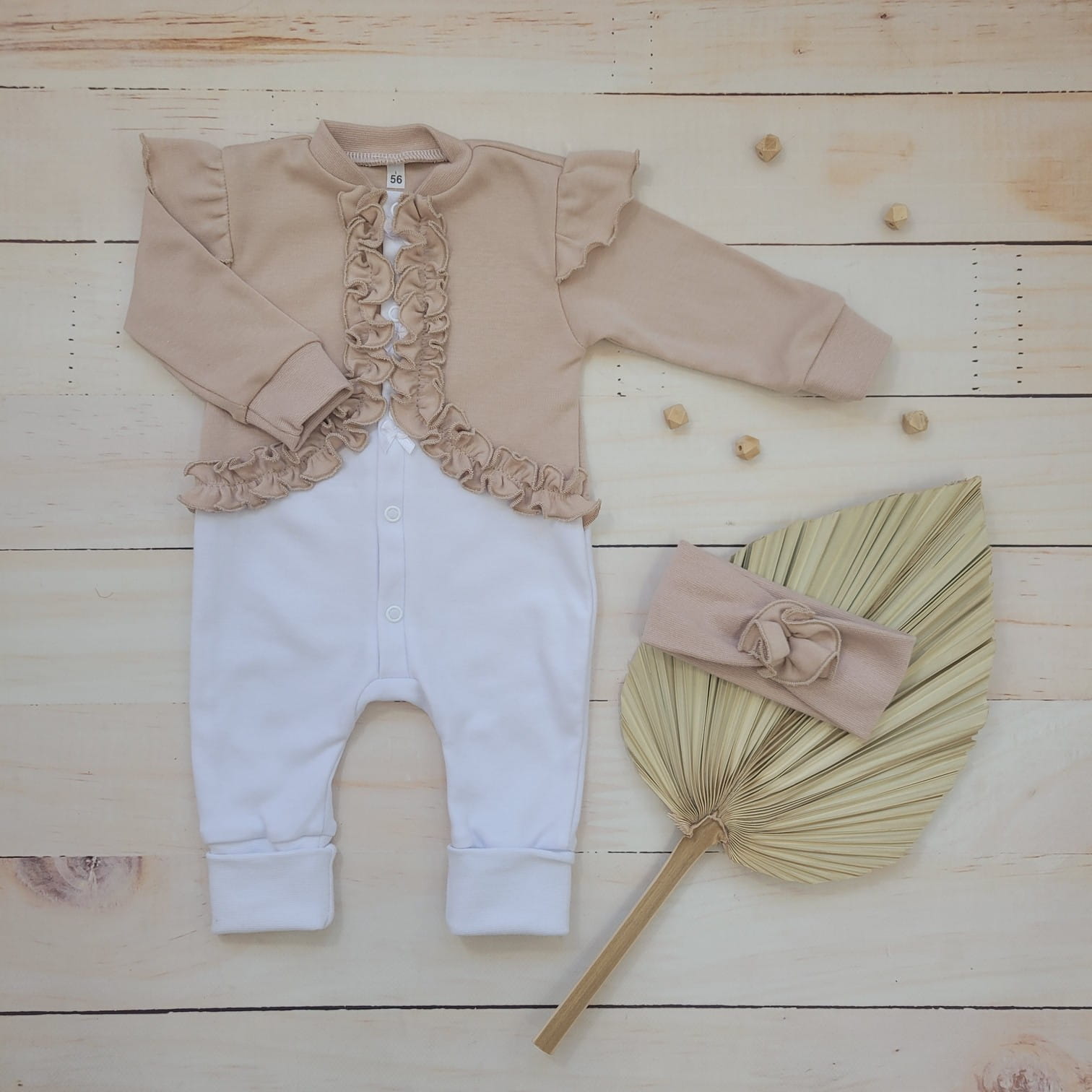 Piękny zestaw pajacyk z opaską, bawełniany zapinany na zatrzaski na całej długości + pasująca opaska.