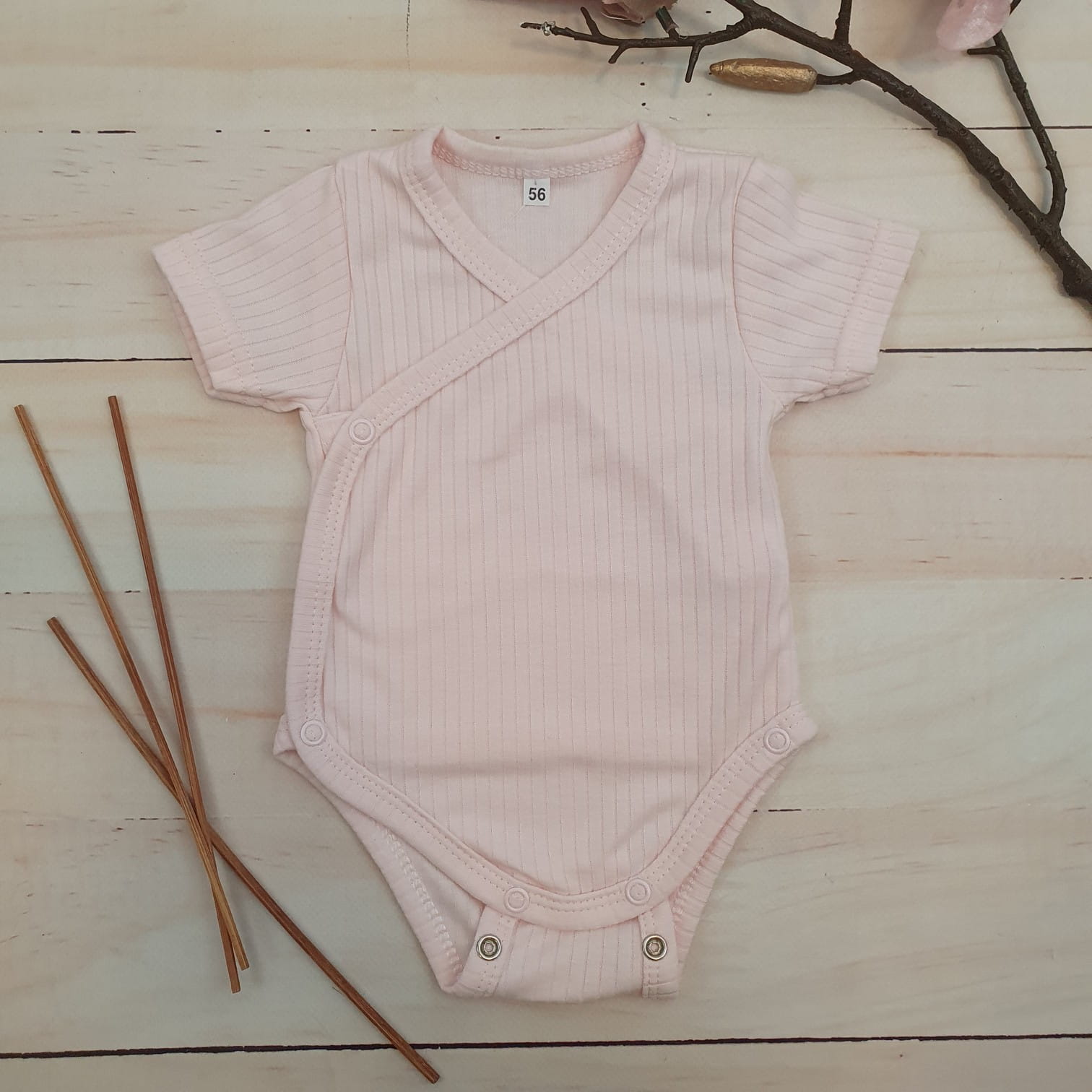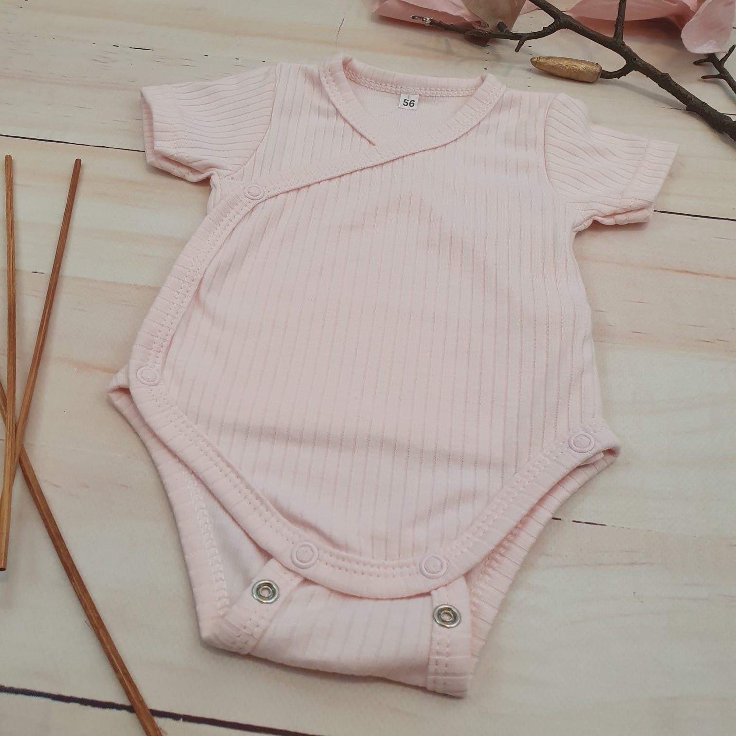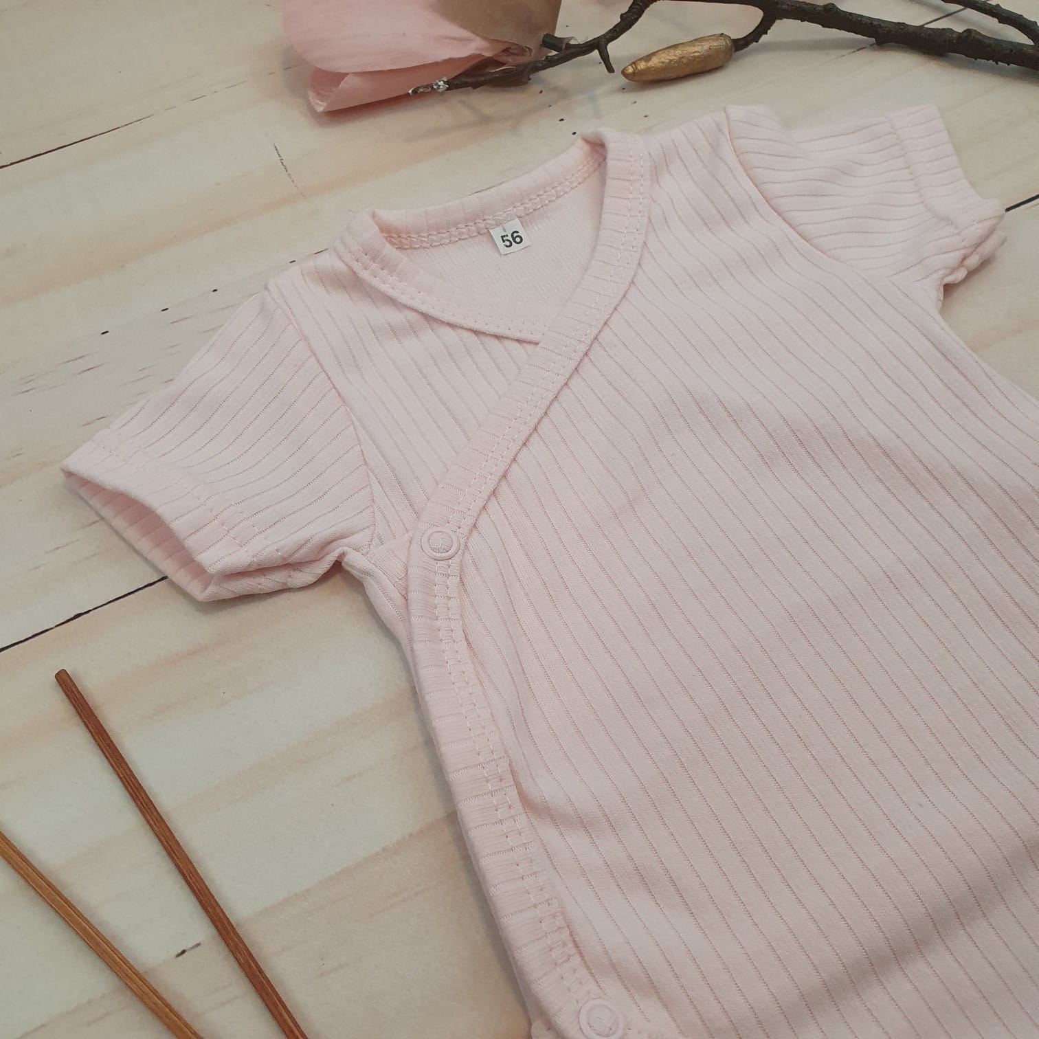 Prążkowane body kopertowe z regulacją, krótki rękaw 50-62 bright pink