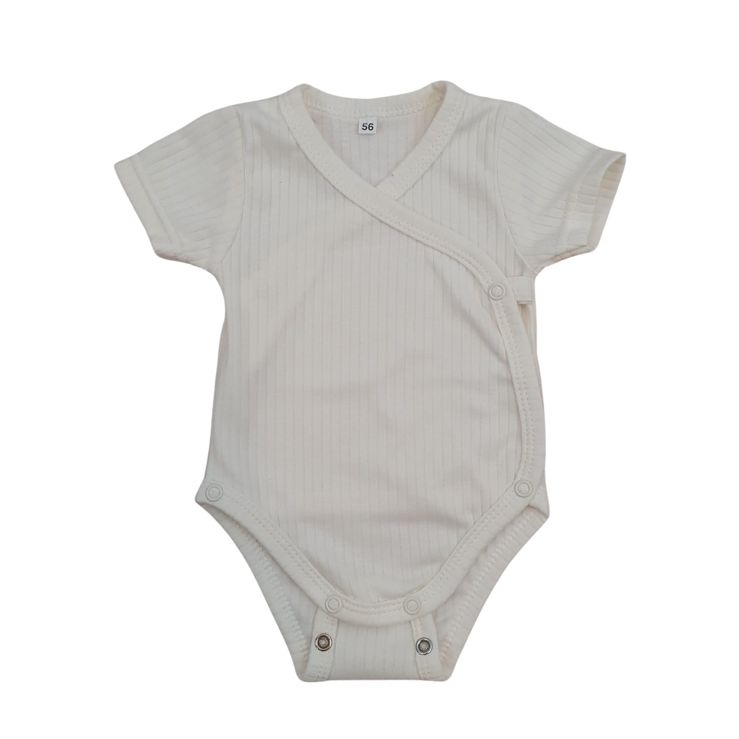 Prążkowane body kopertowe z regulacją, krótki rękaw 50-62 ecru