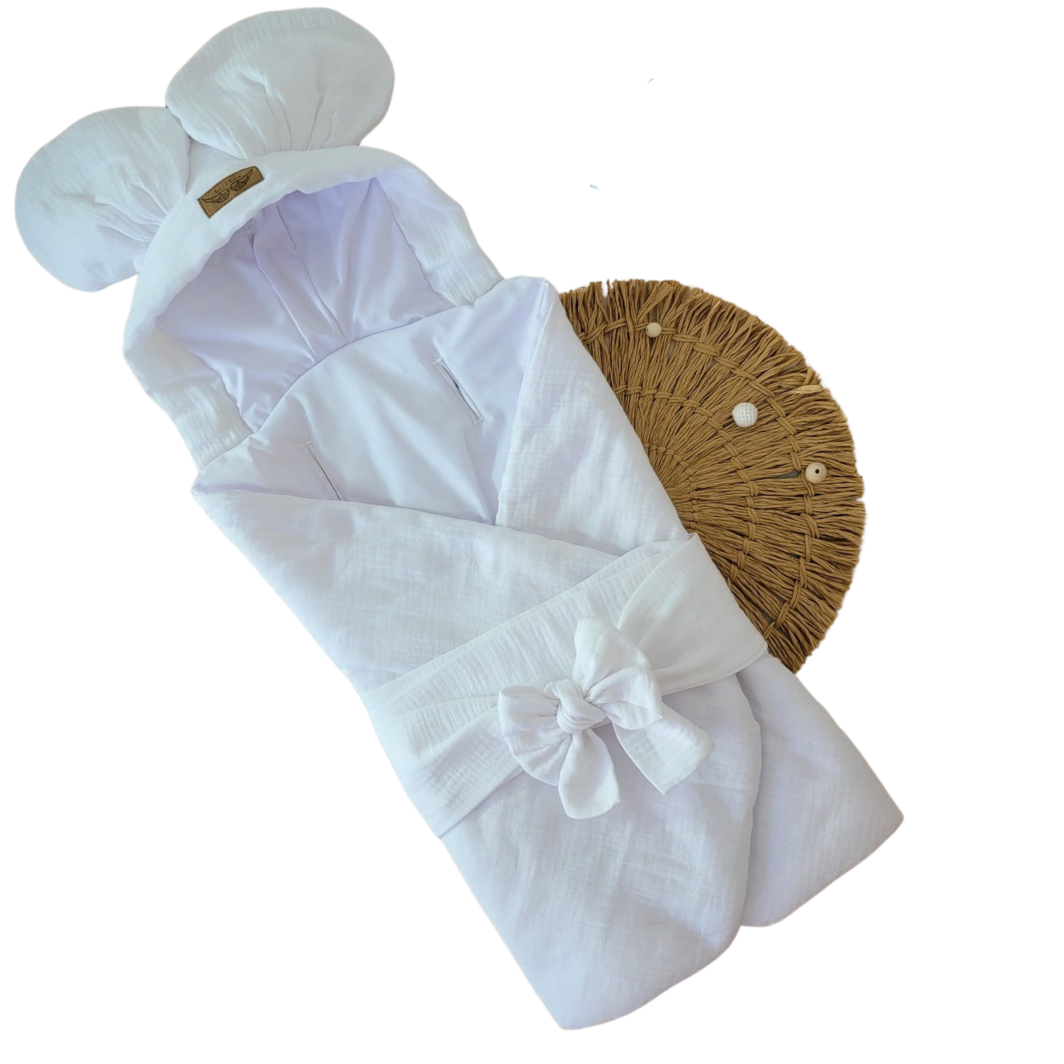 Śpiworek muślinowy z bawełnianą podszewką do fotelika biały