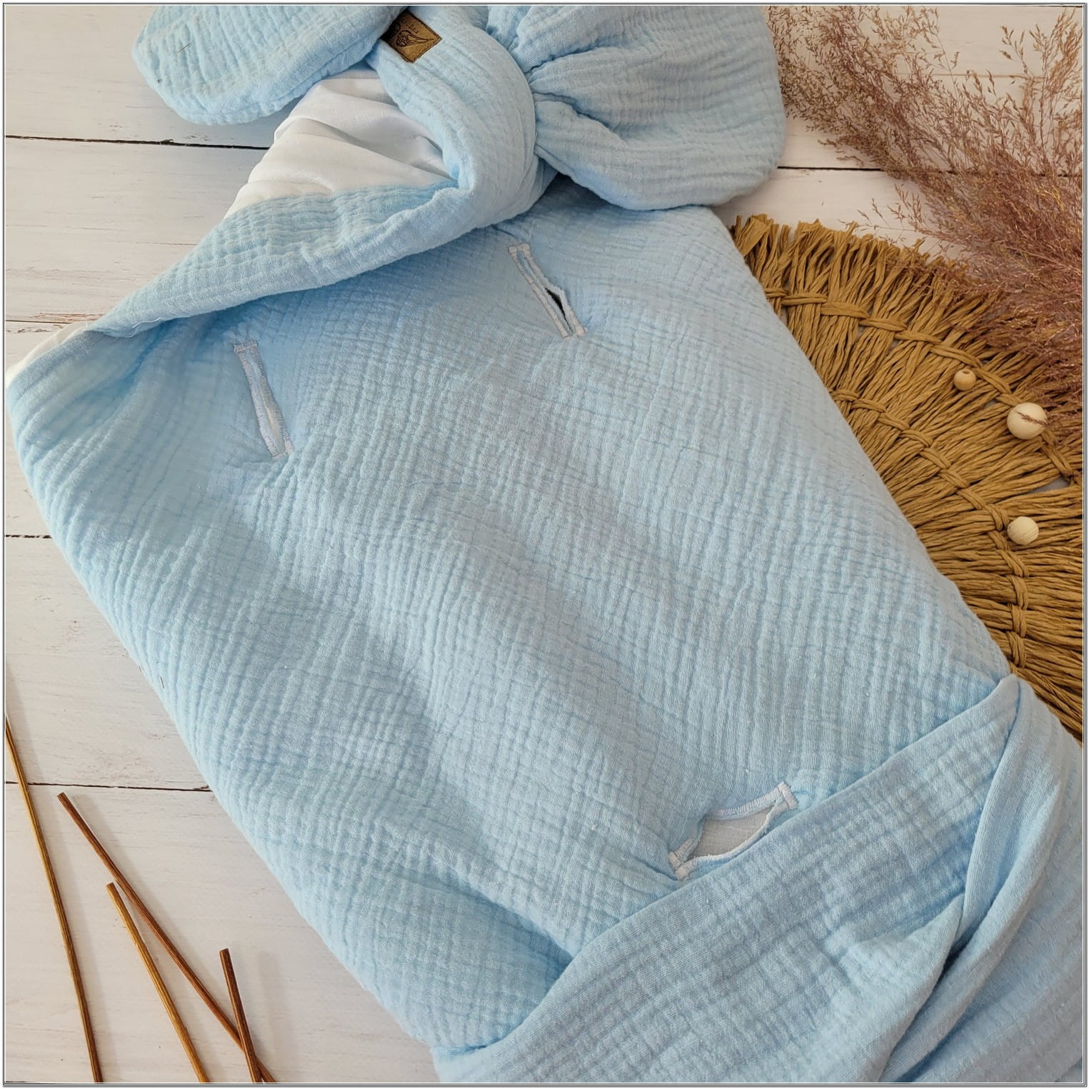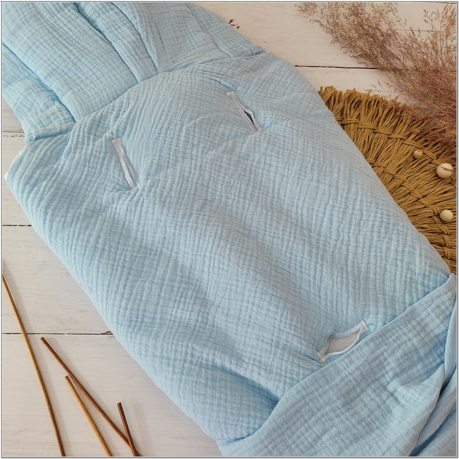 Śpiworek muślinowy z bawełnianą podszewką do fotelika błękitny