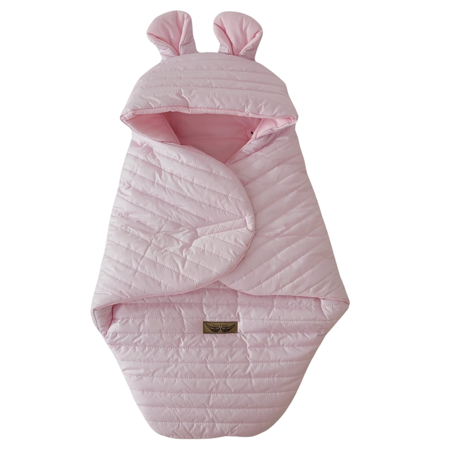 Śpiworek wykonany został z zewnątrz z materiału kurtkowego, pikowanego. W środku mięciutka podszewka 100%Bawełna. Między warstwy zaszyty ocieplacz.