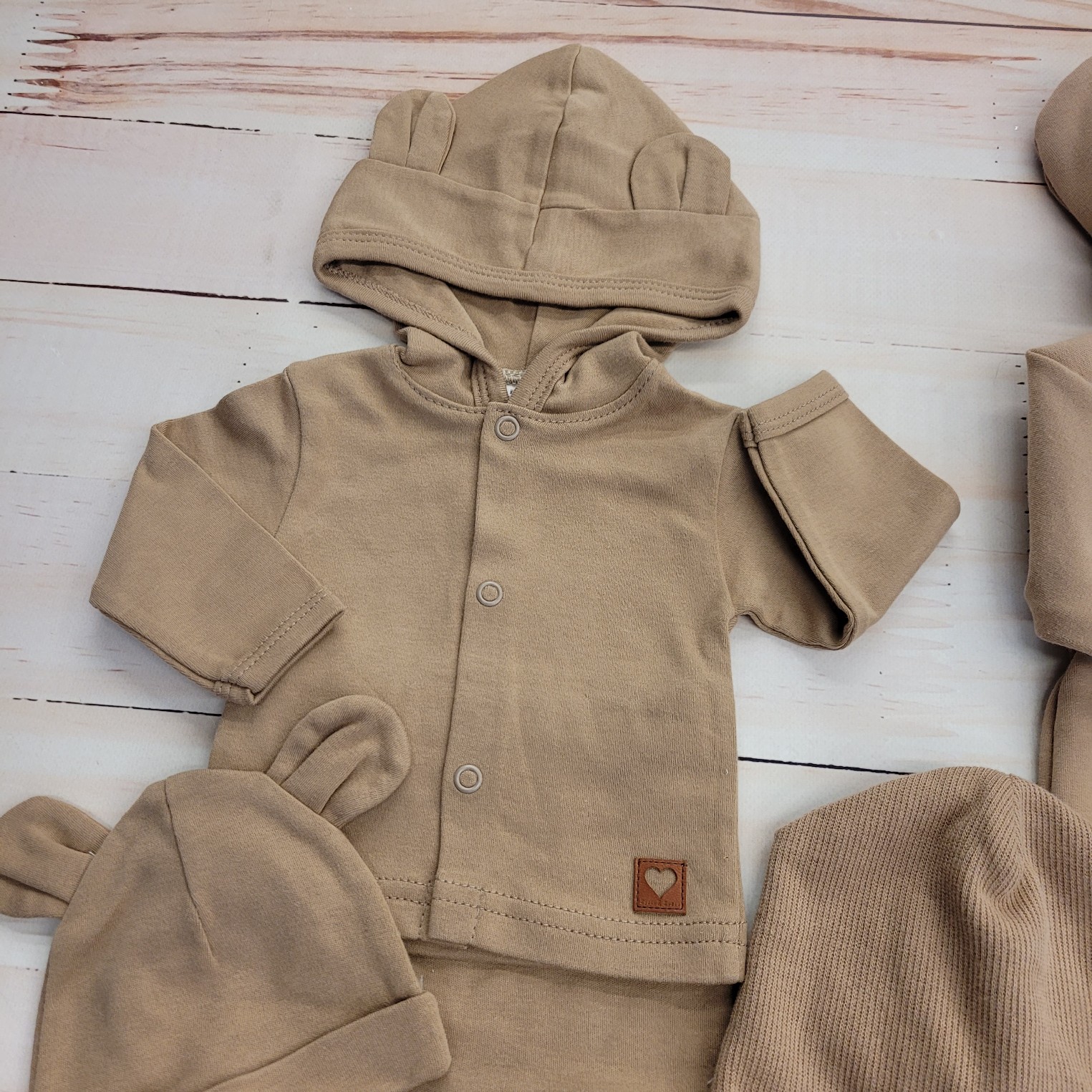 Stylizacja w kolorze czekoladowym. Świetnie sprawdzi się na wiosenne, ale także letnie, czy jesienne wyjście ze szpitala.