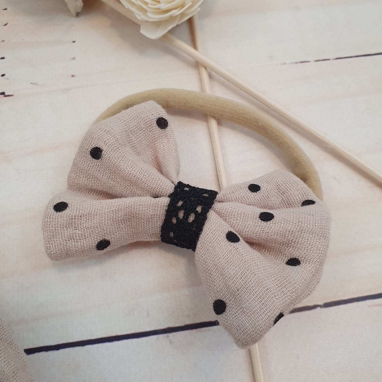 Komplet: Elegancka wyjściowa sukienka muślinowa w kropeczki z krótkim rękawkiem  + opaska muślinowa
