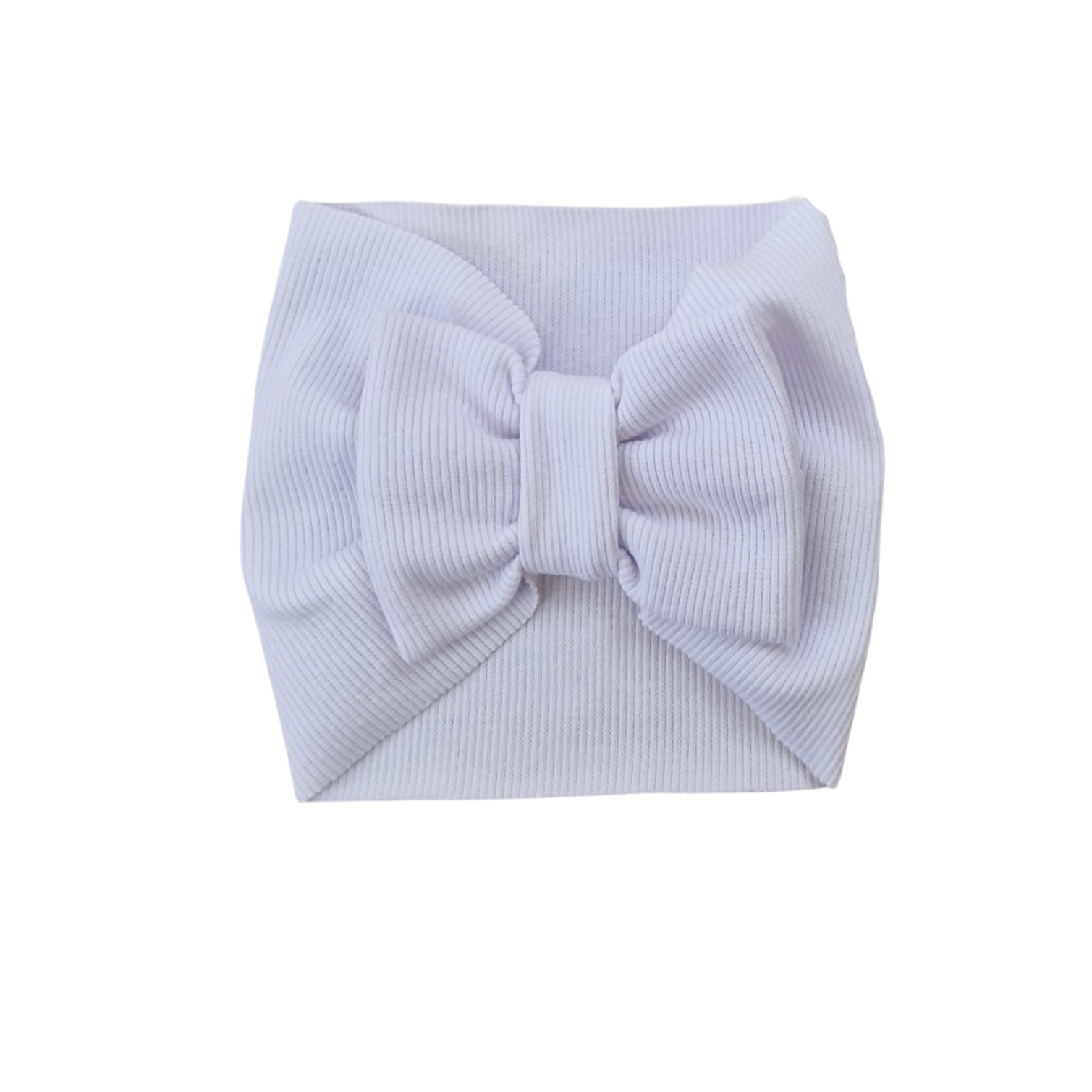 Szeroka opaska prążkowana kokarda rozmiar 0-6miesięcy 6-12miesięcy 1-3lat biała