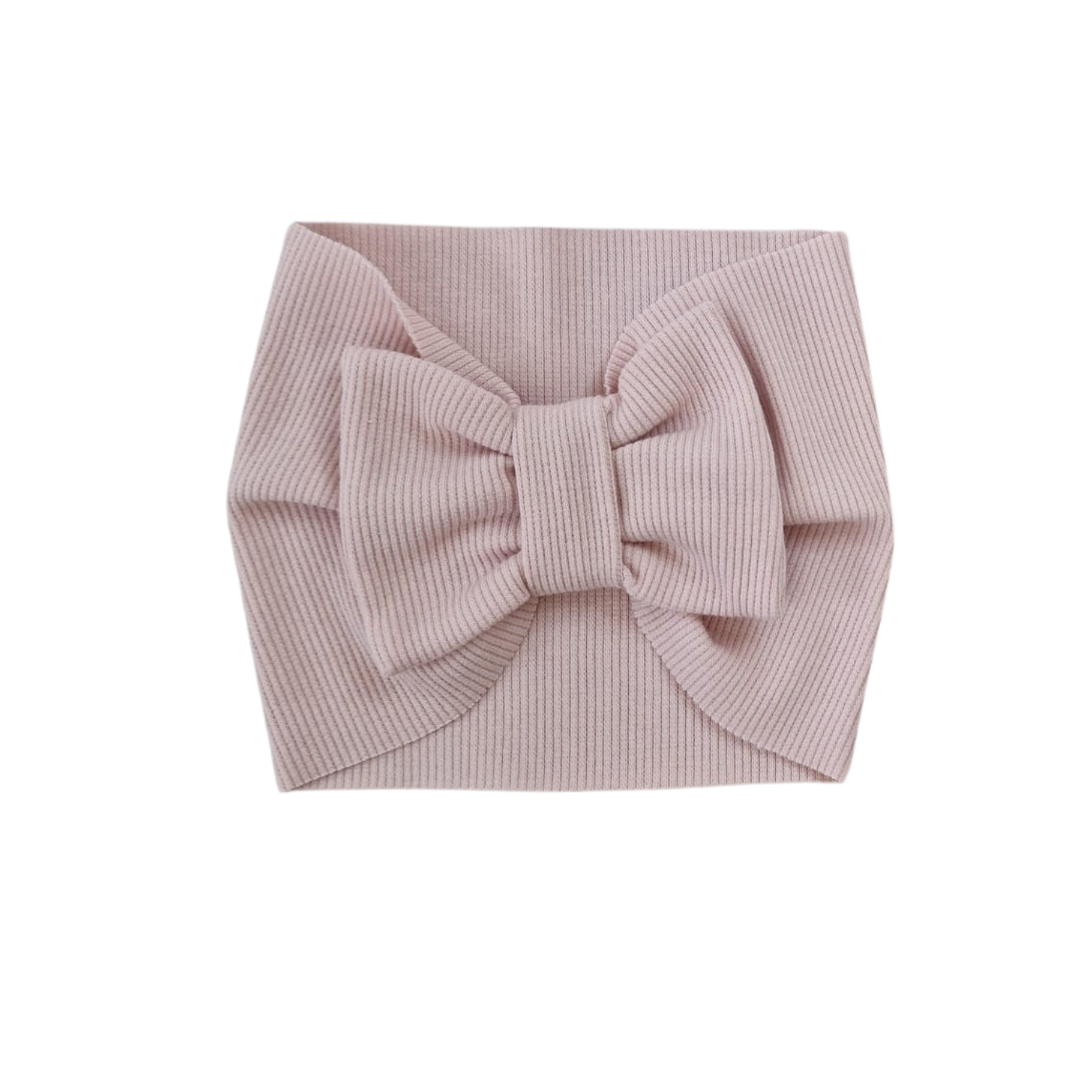 Szeroka opaska prążkowana kokarda rozmiar 0-6miesięcy 6-12miesięcy 1-3lat brudny róż